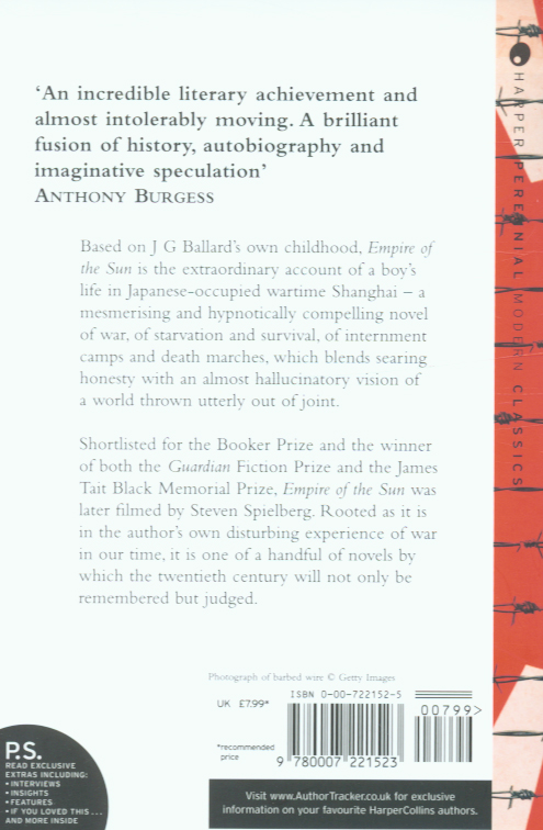 / Includes PS Section The heartrending story of a British boy's four year ordeal in a Japanese prison camp during the Second World War. / Published to great acclaim in 1984, it won the Guardian Fiction Prize and the James Tait Black Memorial Prize and was shortlisted for the Booker. / Made into a major motion picture by Steven Spielberg. / J.G. Ballard has been at the forefront of modern British fiction for over three decades, achieving remarkable critical acclaim and commercial success. / His critically acclaimed recent novels, COCAINE NIGHTS and SUPER-CANNES, have won J.G. Ballard a whole ne