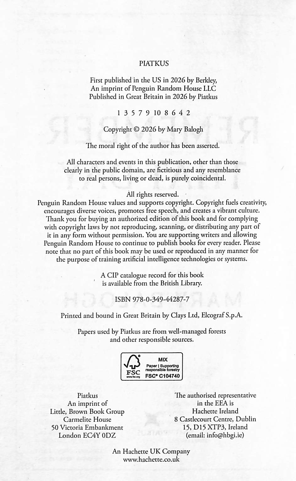 Remember That Day by Balogh, Mary (9780349442877) | Browns Books