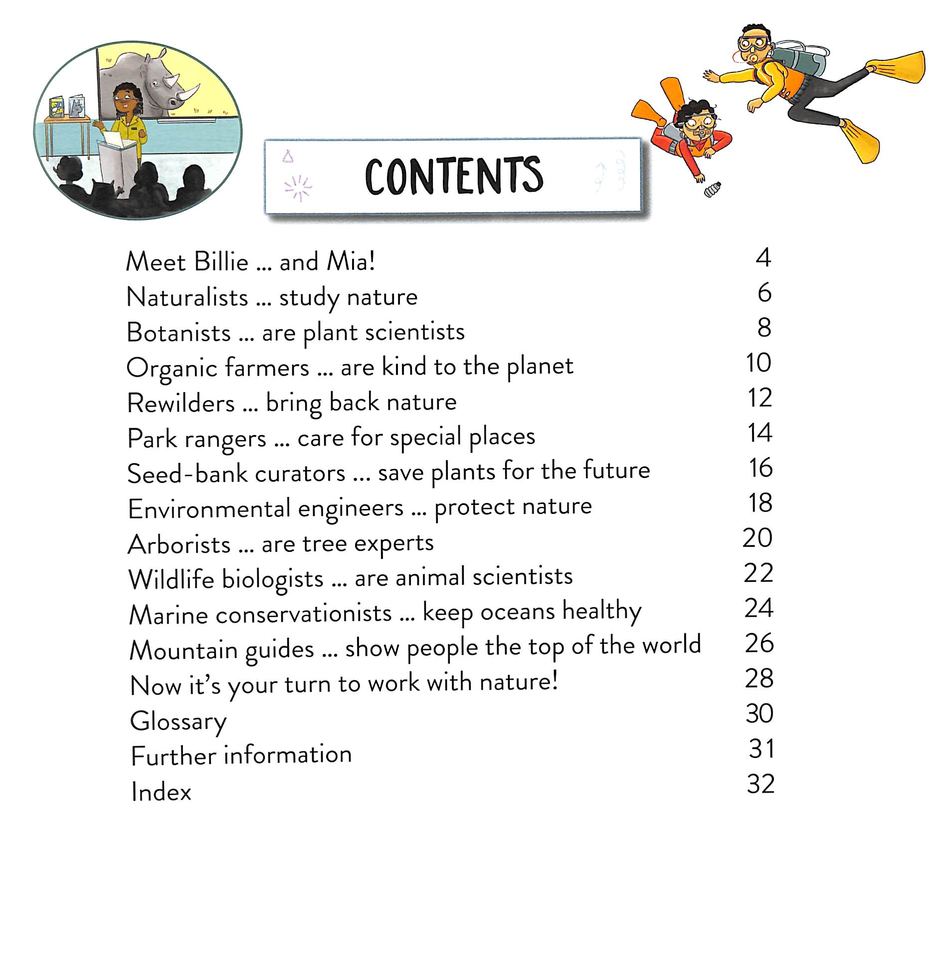 In Working in Nature, Billie and Mia meet an arborist, an environmental engineer, a rewilder, a mountain guide and many more.