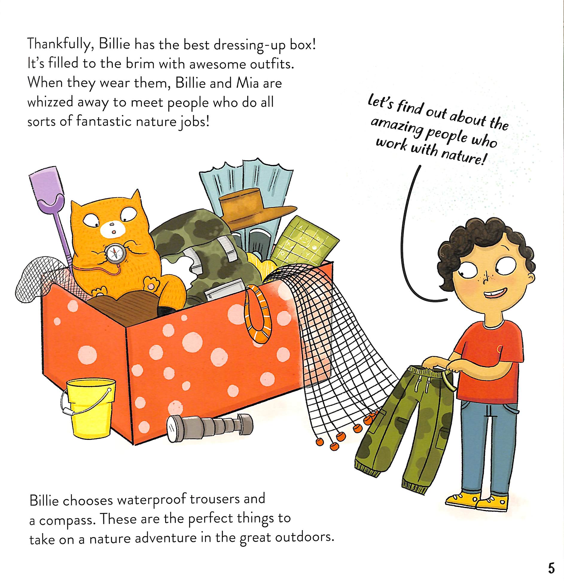 Find out about all sorts of nature-related jobs that people do. Billie has a very special dressing up box. When they choose an outfit from the box, they are whisked away to meet all sorts of people doing all kinds of amazing jobs.