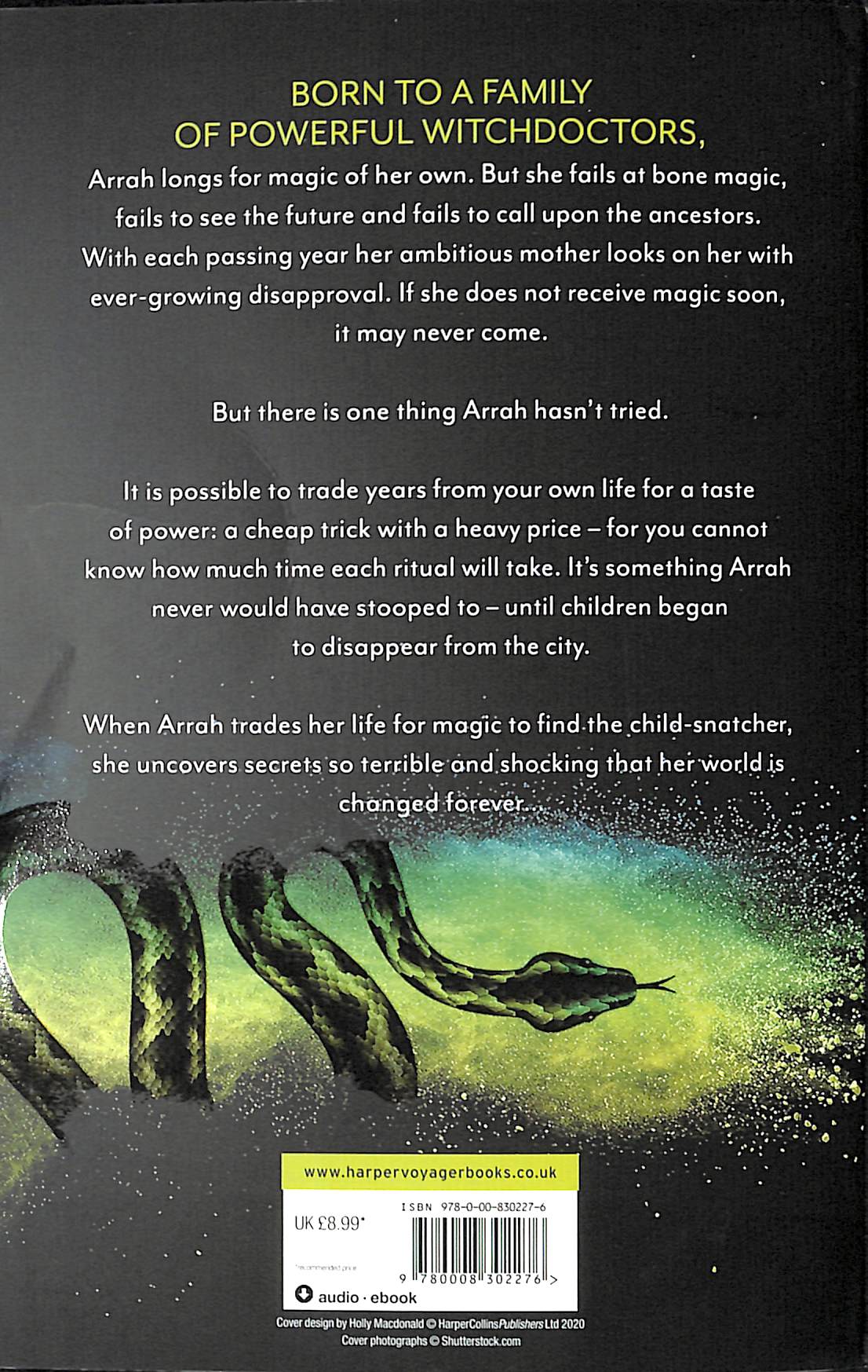 Explosive fantasy set in a West African world of magic and legend, where one girl must sacrifice her life, year by year, to gain the power necessary to live up to the expectations of the mother she has never been good enough for. Perfect for fans of Sarah J Maas, Tomi Adeyemi and Black Panther There’s magic in her blood. Arrah is a young woman from a long line of the most powerful witch doctors in the land.