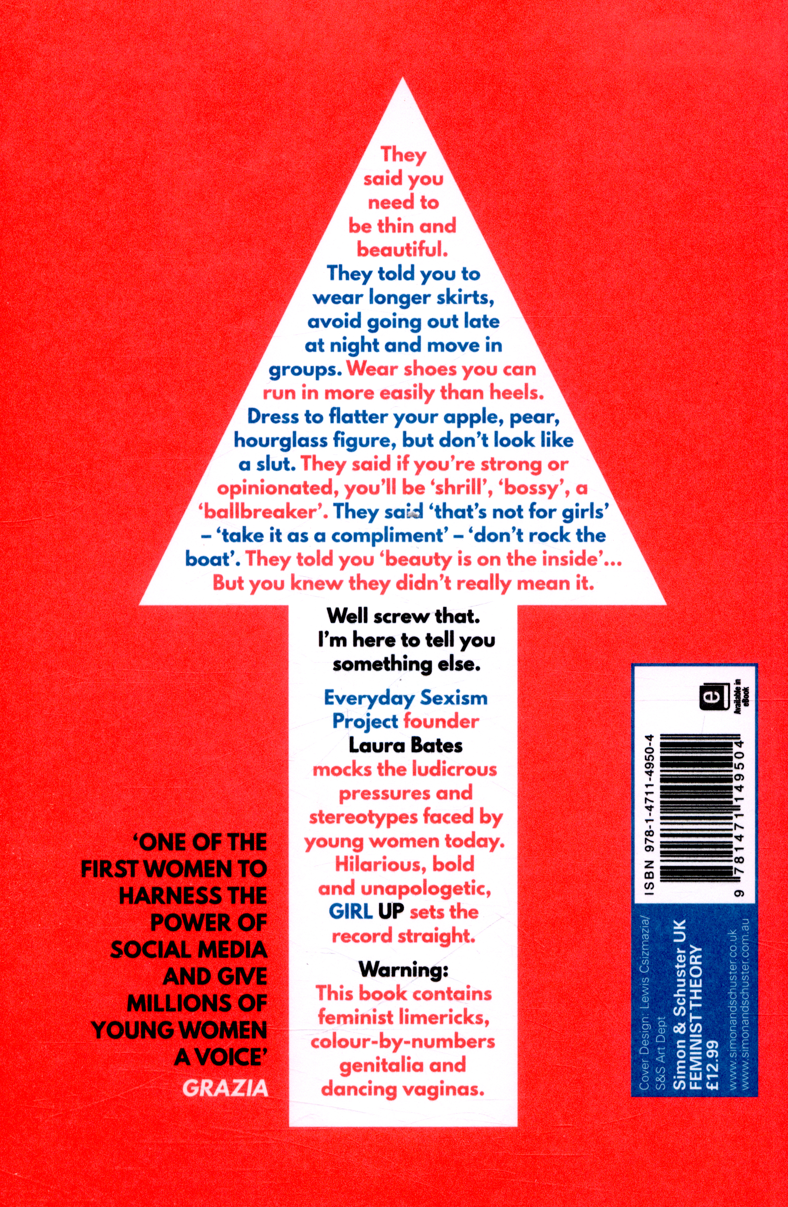 Of course it's fine for the boys, but you should know your place. They told you 'that's not for girls' - 'take it as a compliment' - 'don't rock the boat' - 'that'll go straight to your hips'. They told you 'beauty is on the inside', but you knew they didn't really mean it. Well screw that. I'm here to tell you something else. Hilarious, jaunty and bold, GIRL UP exposes the truth about the pressures surrounding body image, the false representations in media, the complexities of a sex and relationships, the trials of social media and all the other lies they told us. 'Bates takes a myth-busting approach to body image, food, sex and advertising, and is particularly good at boiling down feminist language into a snappy, everyday vernacular without diluting its power.' Metro 'Essential reading for young women and girls, Girl Up is set to become a key guiding text for the next generation like The Beauty Myth and The Feminine Mystique have for preceding generations.