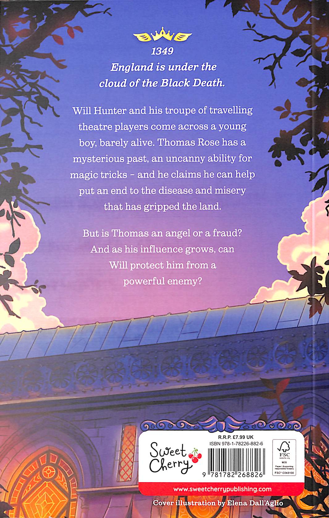 Thomas Rose has a mysterious past, an uncanny ability for magic tricks – and he claims he can help put an end to the disease and misery that has gripped the land. But is Thomas an angel or a fraud? And as his influence grows, can Will protect him from a powerful enemy?It’s up to new and returning readers to read and find out!