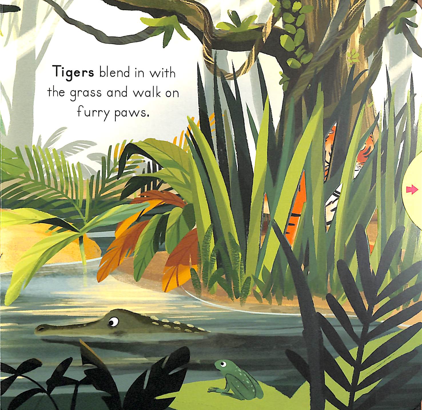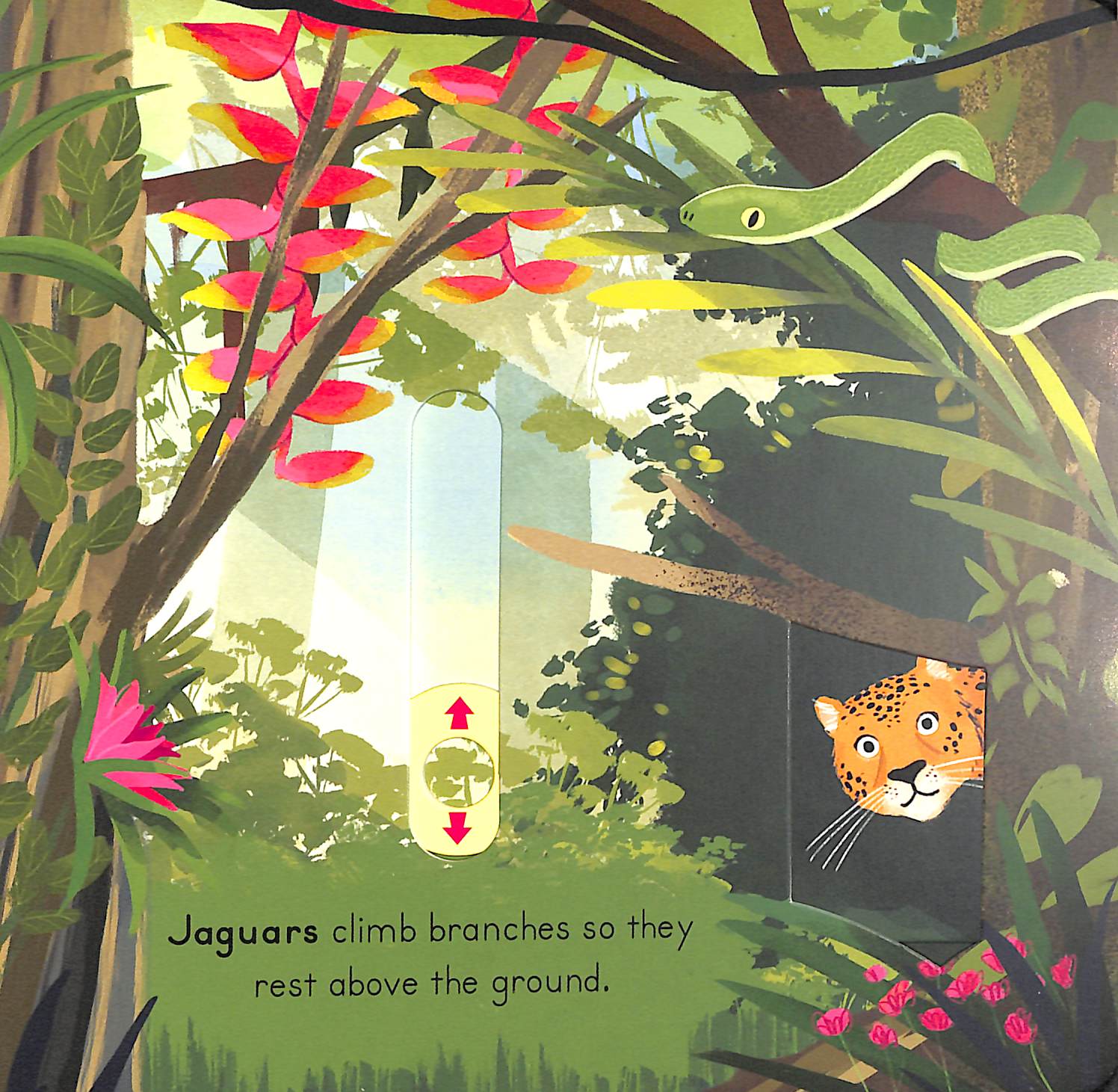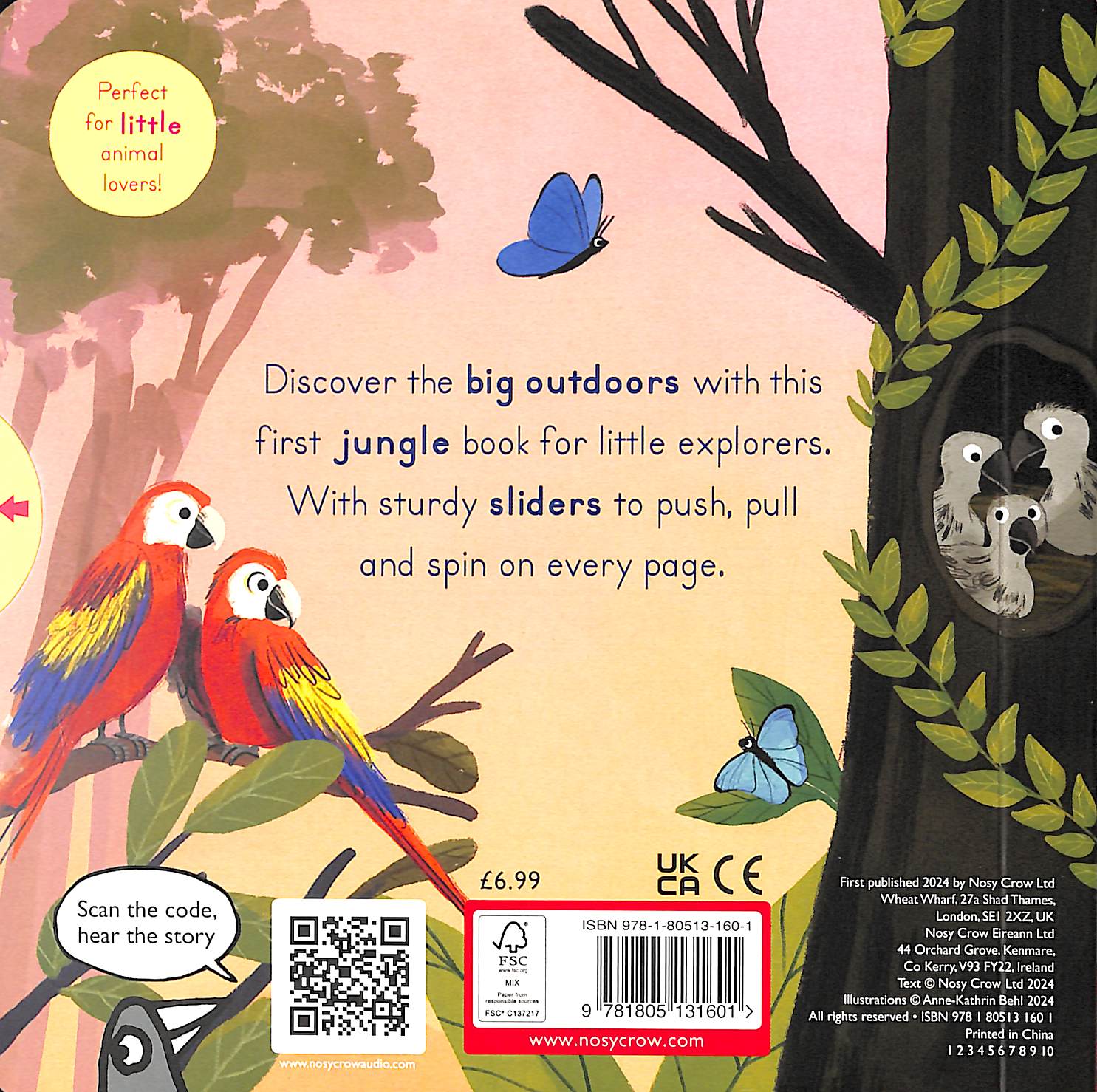 With vibrant artwork printed on white board, robust easy-to-use mechanisms for tiny hands and a rhyming text with friendly animal facts, these are the perfect books to captivate curious little explorers time and time again. In this first jungle animals book, there are parrots soaring high over the trees, pandas munching on bamboo, tigers prowling through the grass and many more creatures to bring to life with the moving parts.. Other titles in the series include: Countryside, Seaside, Woods, Farm, River and SnowIncludes a FREE Nosy Crow Stories Aloud® audiobook!