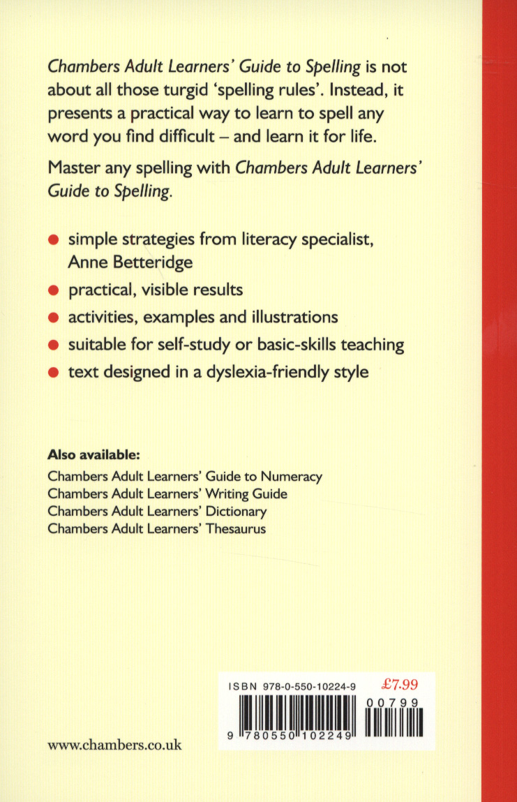 Chambers Adult Learners' Guide to Spelling is not about all those turgid 'spelling rules'.