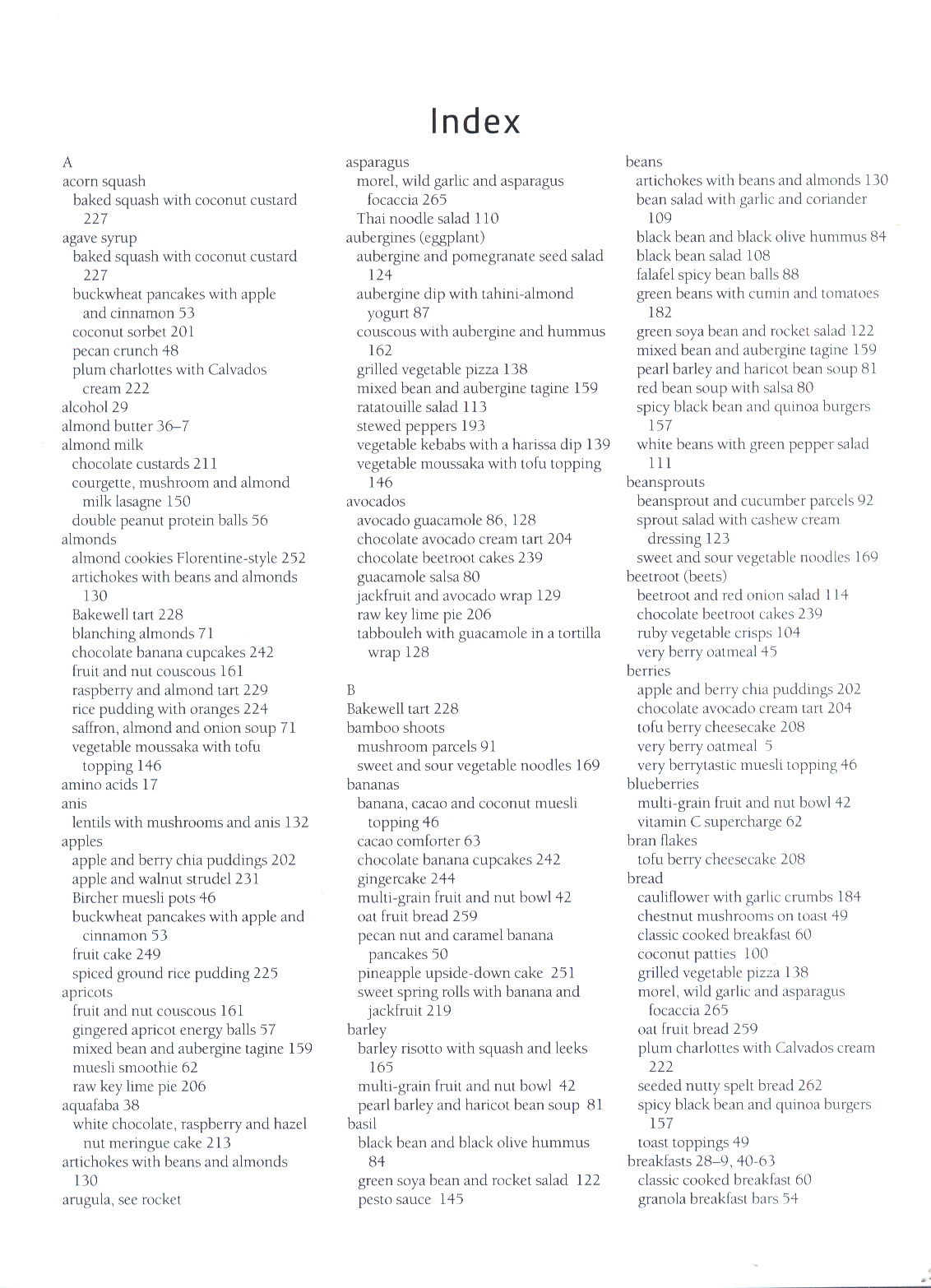 Recipes include Yellow Pea and Lentil Soup; Roasted Kale Crisps; Thai Noodle Salad; Malaysian Tofu and Quinoa Laksa; Spiced Greens with Hemp Seeds; Chocolate Beetroot Cakes; and Morel, Garlic and Asparagus Focaccia.