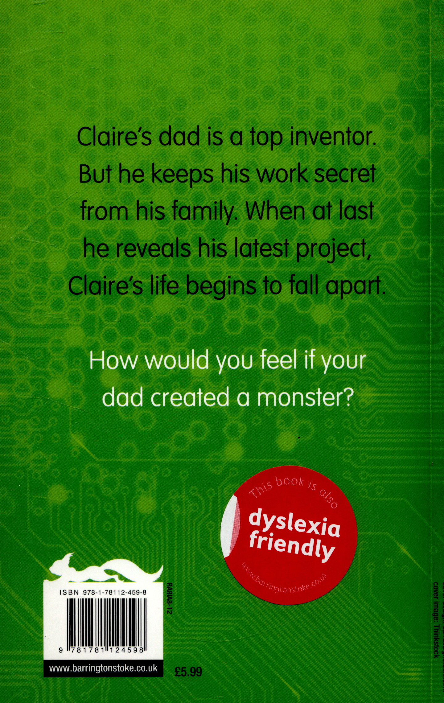 But the big reveal isn't at all what she expected and now Claire has a dilemma on her hands – what do you do when your dad has created a monster…? Particularly suitable for readers aged 9+ with a reading age of 8.