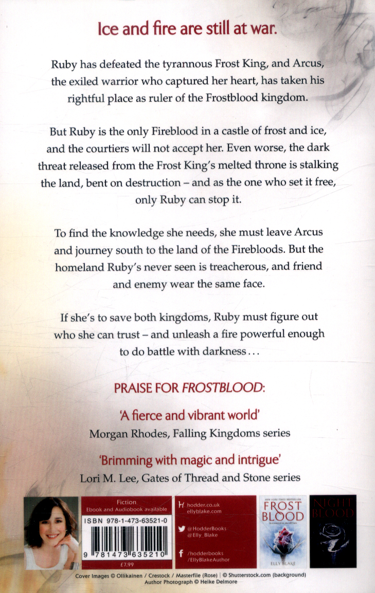 The fiery, action-packed sequel to the New York Times bestselling Frostblood, perfect for fans of Red Queen and Throne of Glass. 'A fierce and vibrant world, a steamy romance, and page-turning twists' Morgan Rhodes, bestselling author 'Hypnotising!' Benjamin of TomesIce and fire are still at war. Ruby has defeated the tyrannous Frost King, and Arcus, the exiled warrior who captured her heart, has taken his rightful place as ruler of the Frostblood kingdom. But Ruby is the only Fireblood in a castle of frost and ice, and the courtiers will not accept her.