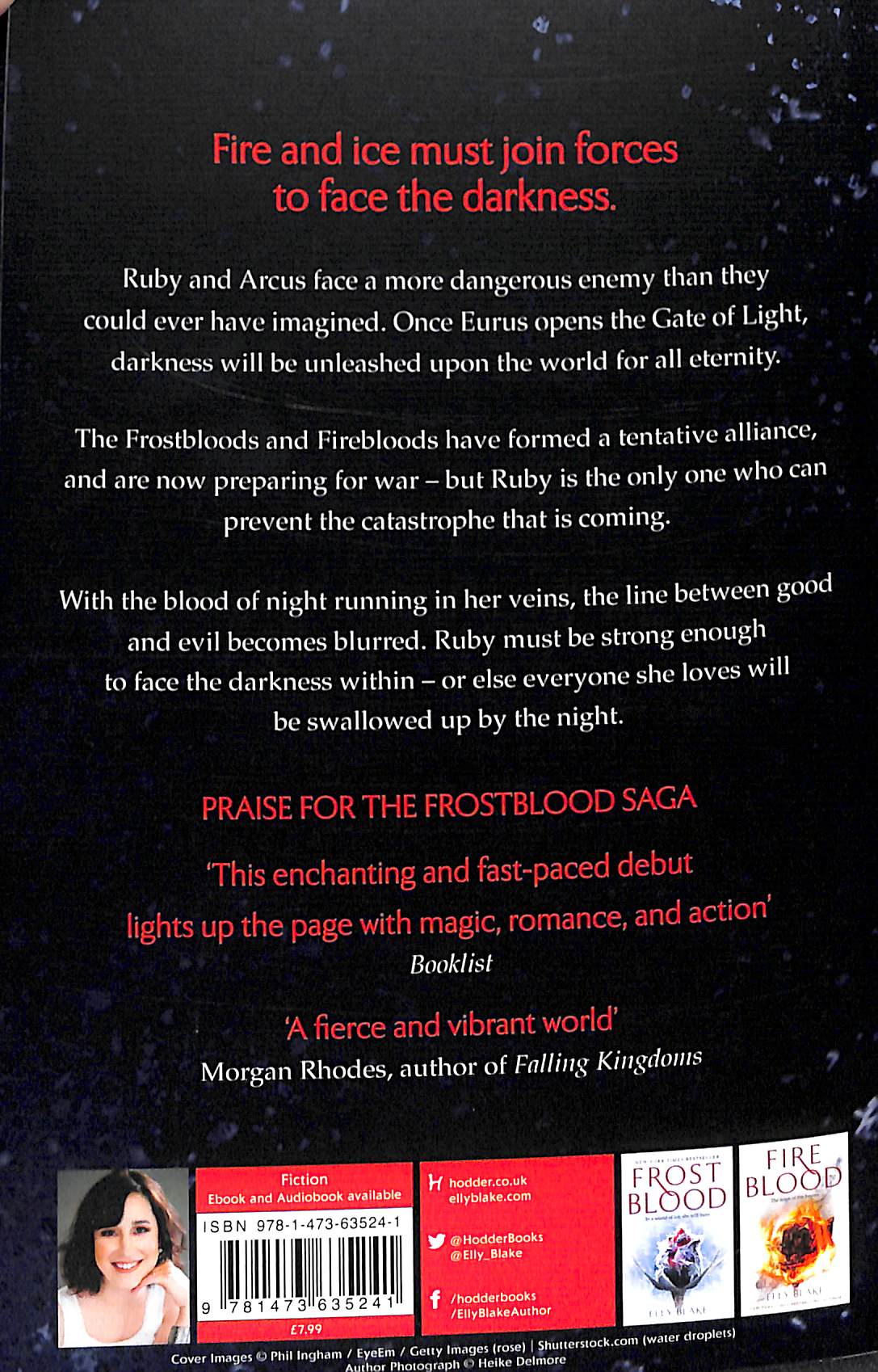 In this heart-pounding finale of Elly Blake's gorgeously written and action-packed Frostblood Saga, the fate of Frostbloods, Firebloods, and all of humanity is at stake