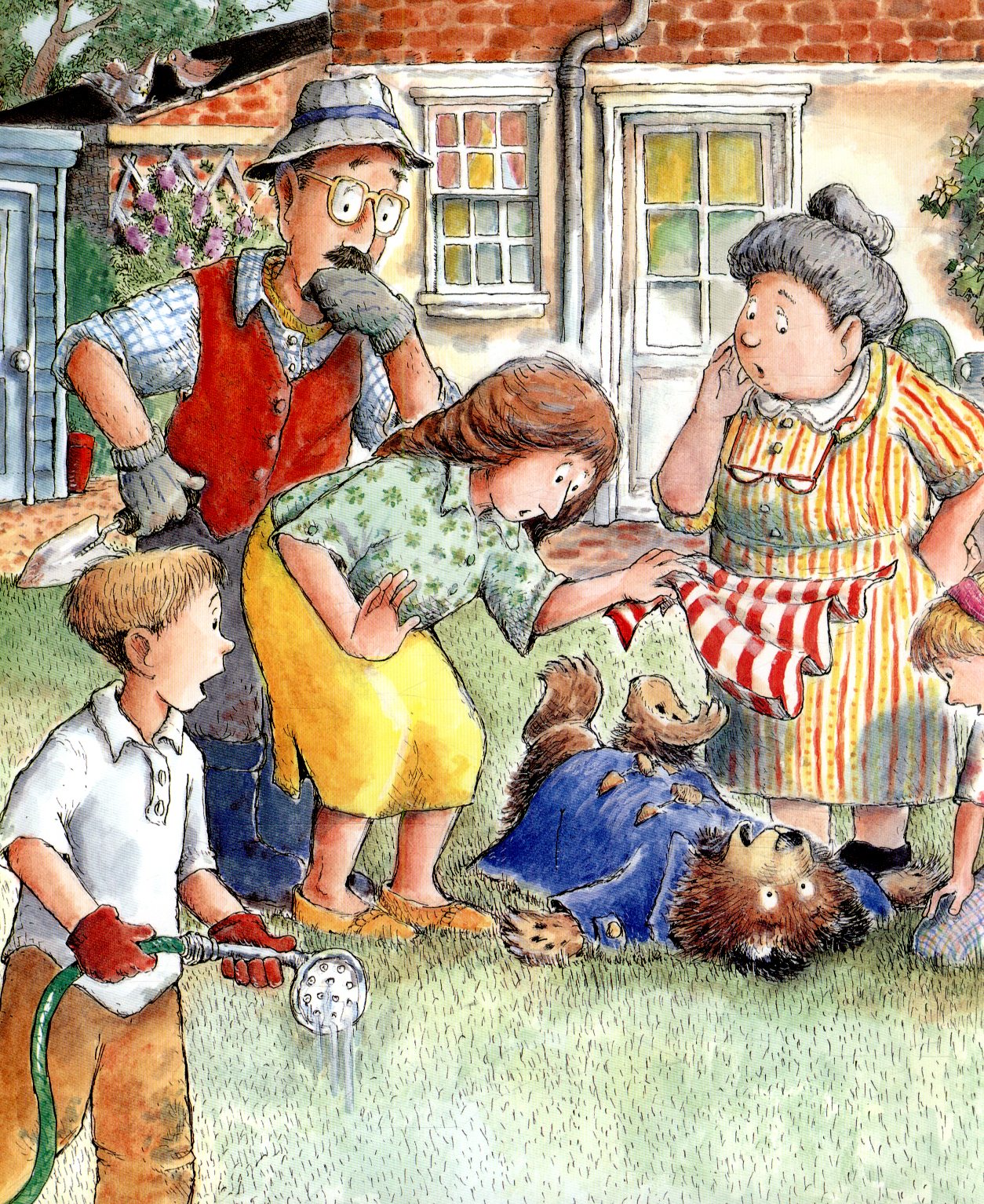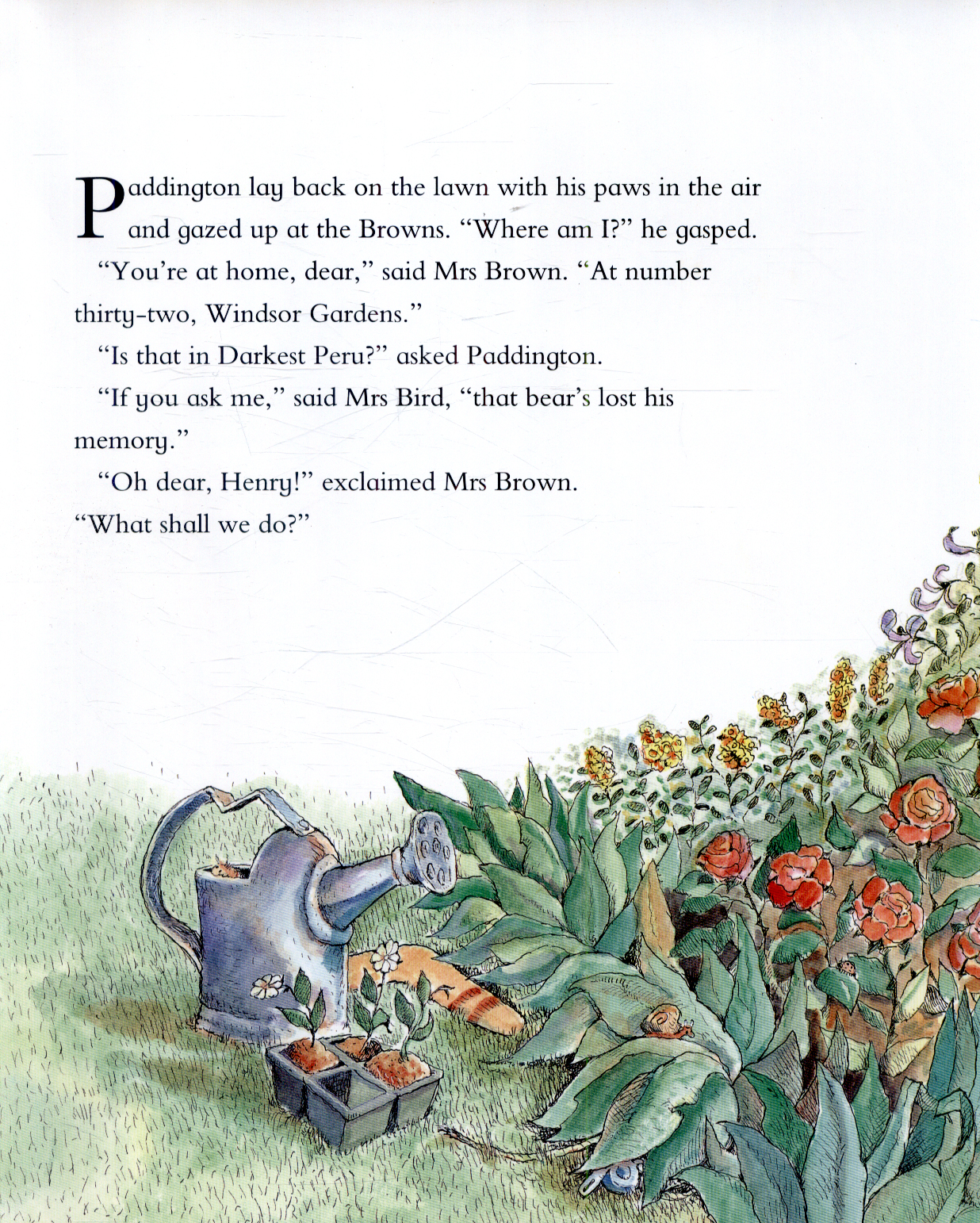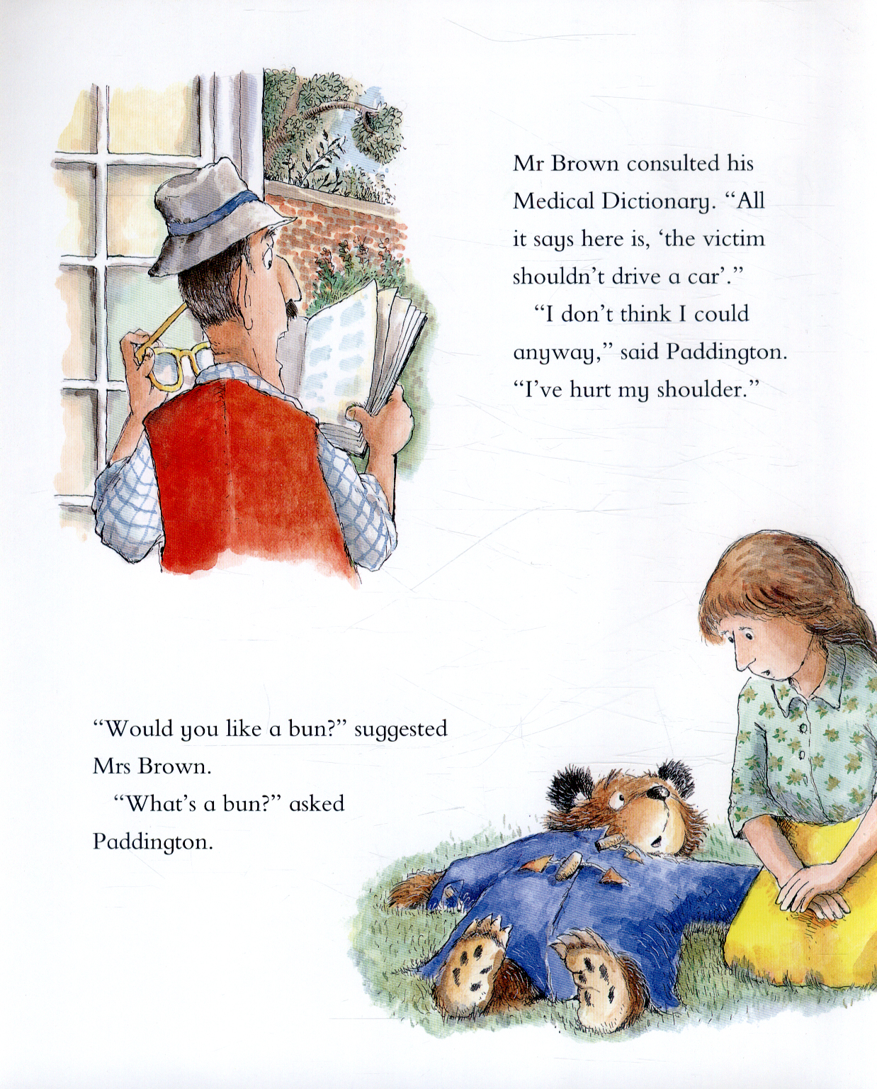 “We should never have given Paddington a boomerang for his birthday,” said Mrs Brown as she gazed down at the figure lying on the lawn. “I knew no good would come of it.” Paddington let out a groan … When the Browns find Paddington lying on the lawn, unable to remember where he is or even what the word “bun” means, they immediately realise something is seriously wrong and send for an ambulance.