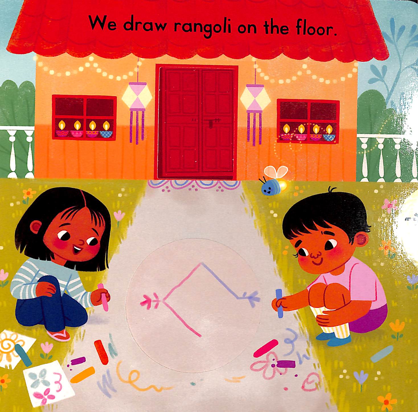 Join in to light the diyas, paint rangoli and watch the sky glow at night with lanterns and fireworks. Little ones will love playing with this bright, colourful board book with gentle, rhyming text and wonderful illustrations by Darshika Varma.