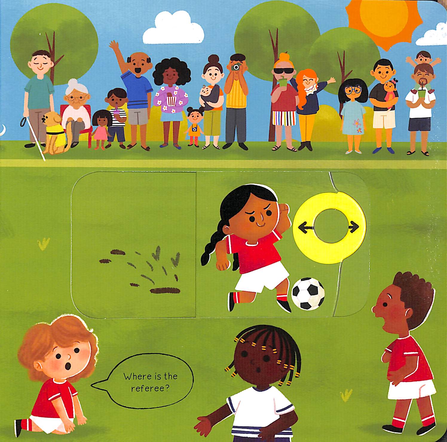 Meet 12 famous football heroes too, including Cristiano Ronaldo, Hugo Lloris and Lucy Bronze!Young children will love playing with this bright and colourful board book with gentle rhyming text, lots to spot and talk about, and wonderful illustrations by Jayri Gómez. Listen along to an audio recording of this story by scanning the QR code on the back cover. Discover more activities in the Busy Book series: Busy Bikes, Busy Swimming and Busy Baking.