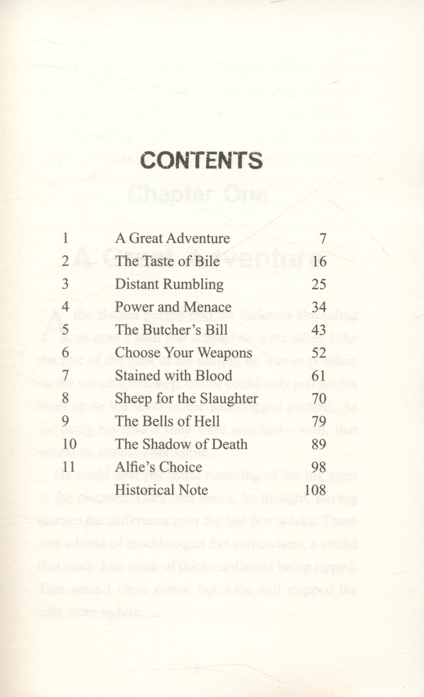 A novel of the First World War. Alfie signs up for the army aged just 15, carried away by patriotic fervour at the start of the Great War.