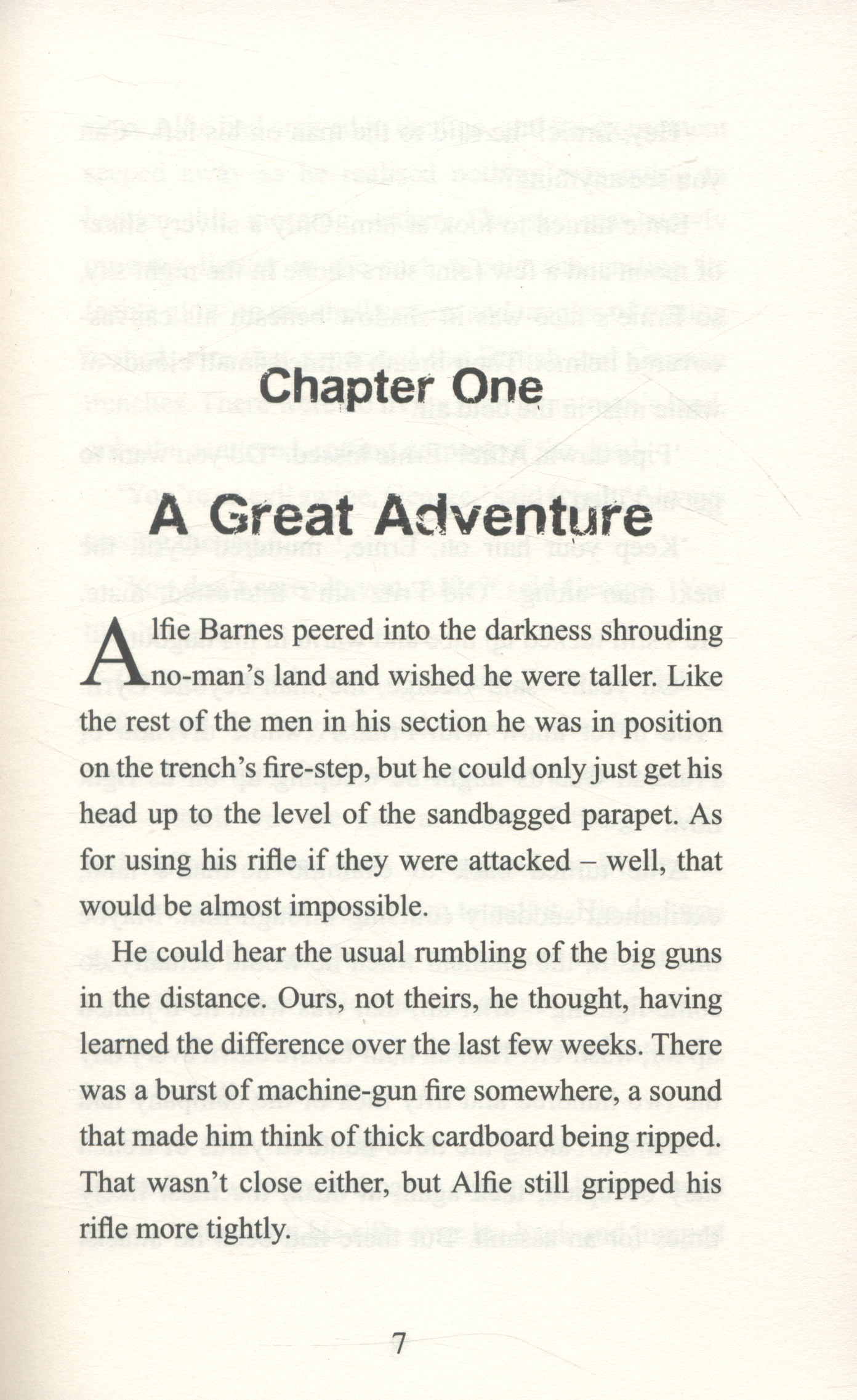 It's hard, and cold, and it's boring. Alfie is desperate to see some action. But when he volunteers for a raid on the German trenches, against the advice of his comrades, Alfie begins to understand what war means, and to see the value of the lives that are being thrown away on the Western Front every day...