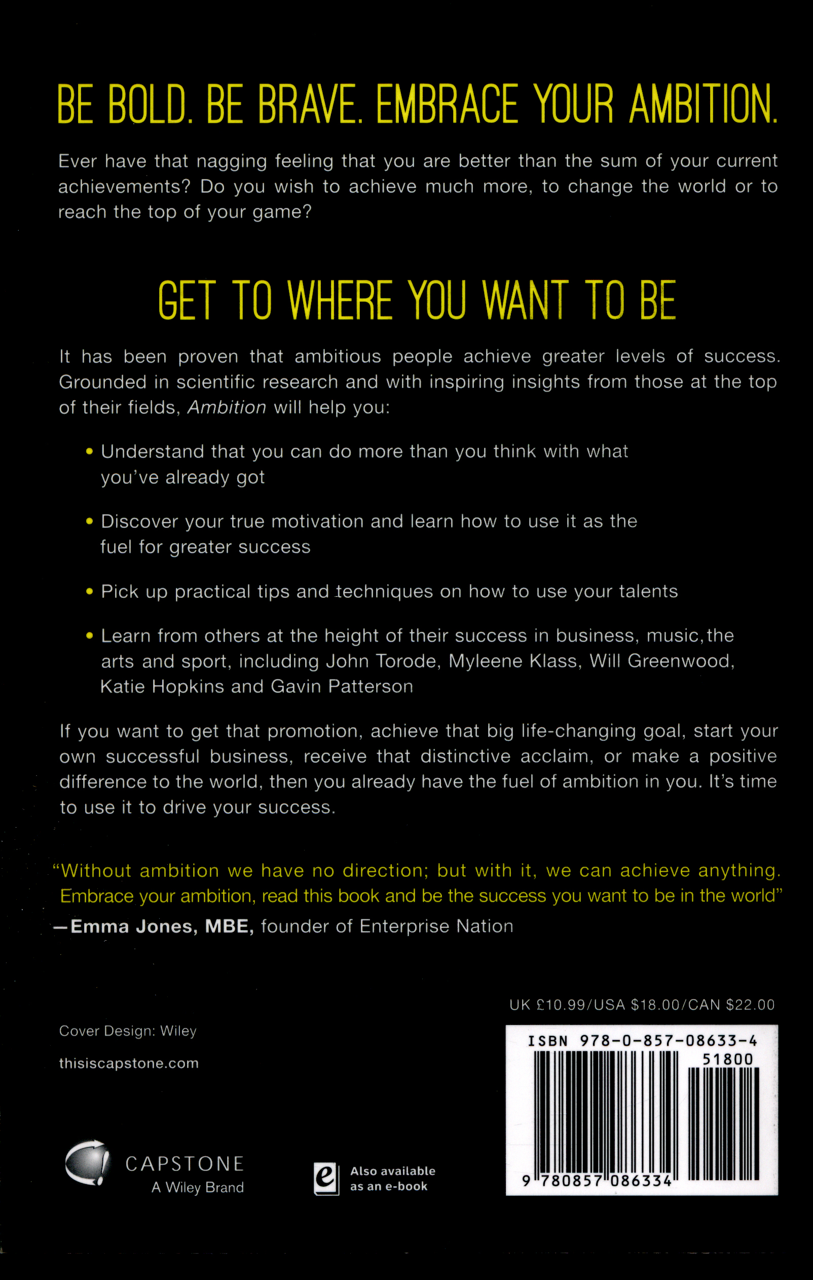 This book will show you how to use it to drive your success. Reveals how you can do more than you think with what you've already gotHelps discover your true motivation using a psychology model and shows you how to use that as the fuel for greater successContains insights from successful people in all fields including John Torode, Myleene Klass, Will Greenwood, Katie Hopkins and Gavin PattersonShows that the world is an exciting place and you can do anything if you use your ambition to help you