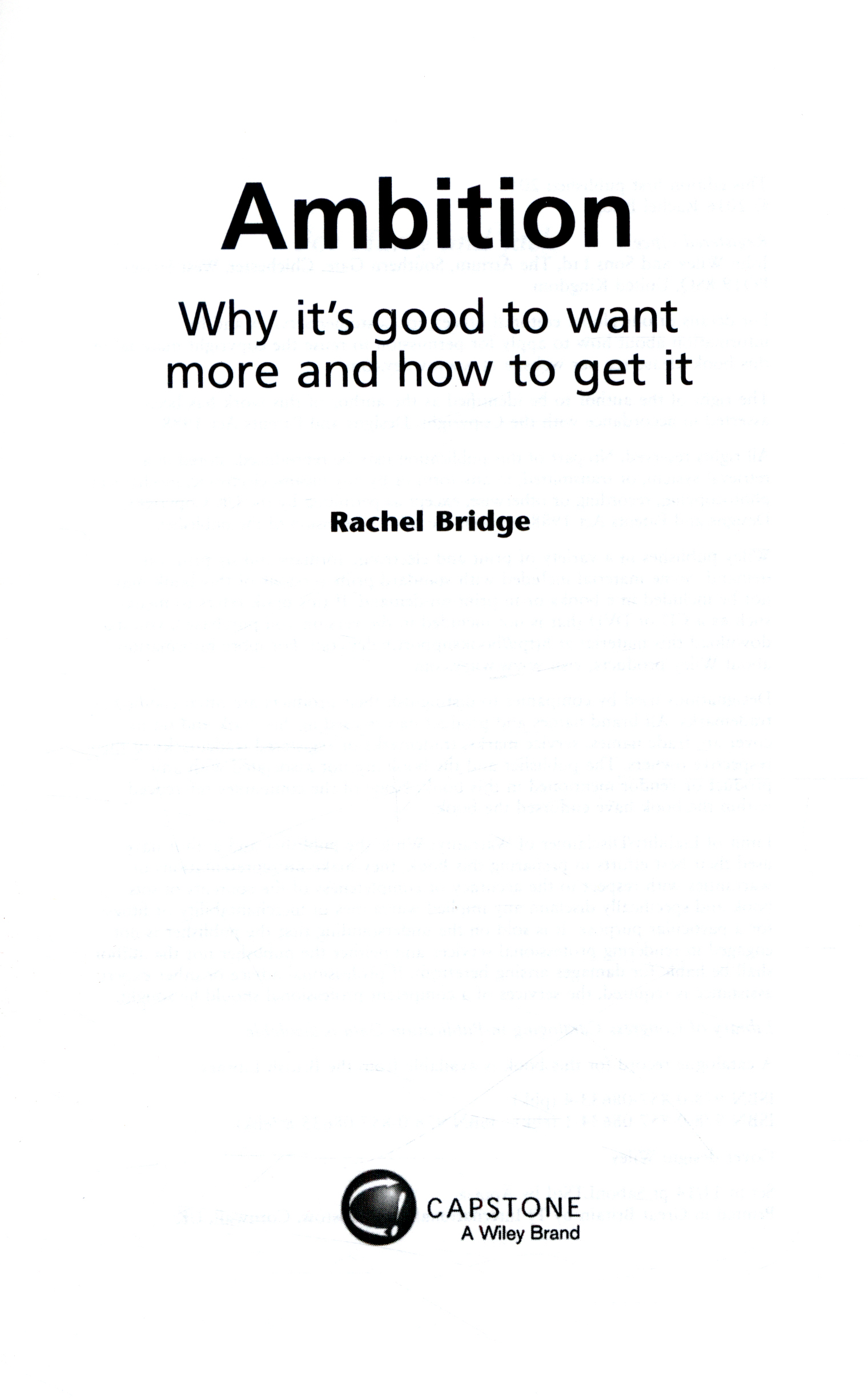 Ambition: Why It's Good to Want More and How to Get It by Bridge, Rachel (9780857086334) | Browns Books