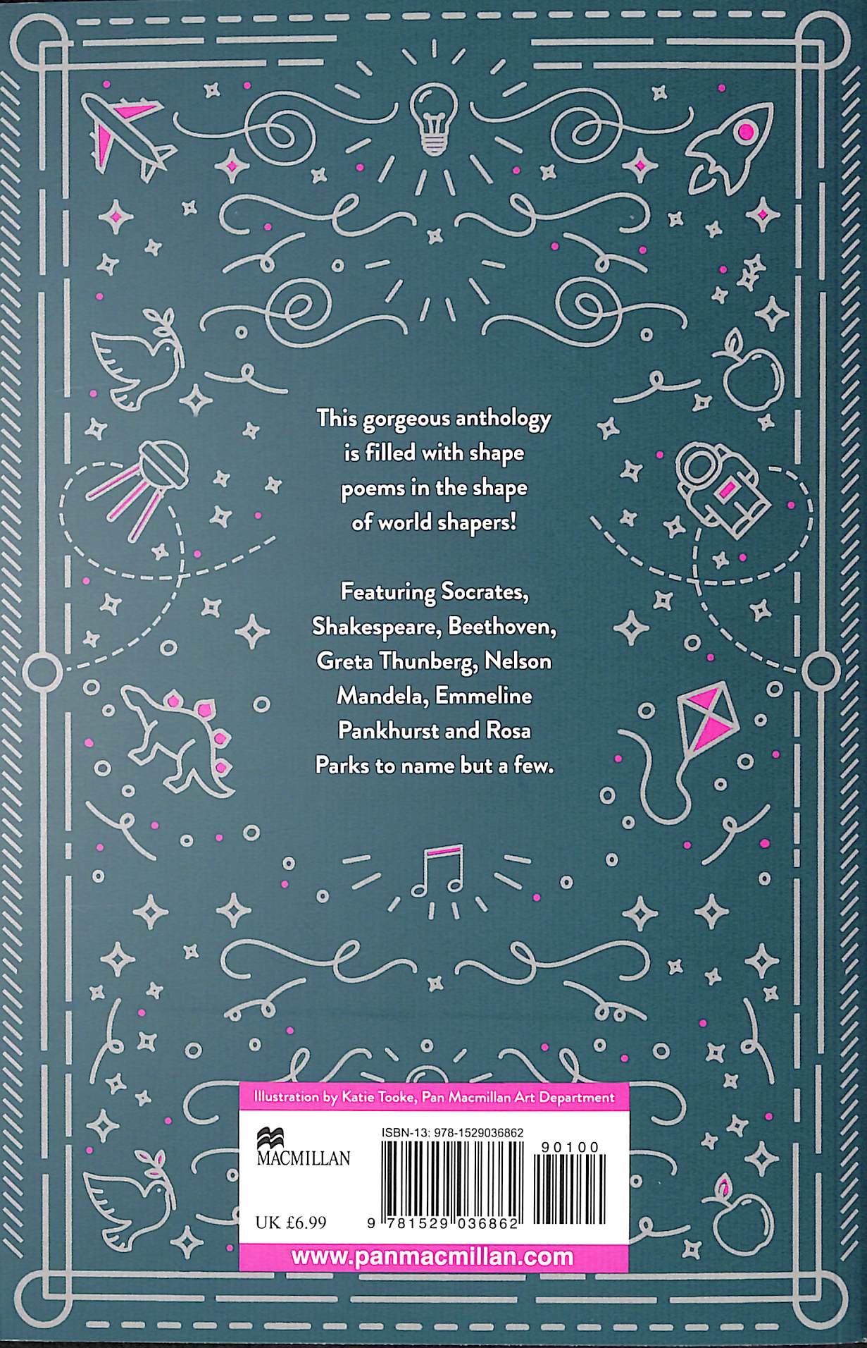 A beautiful gift anthology containing forty incredible poems written out in the shape of world shapers!In Shaping the World learn about about Amelia Earhart in a poem shaped like a plane, Maya Angelou in a poem shaped like a bird or Francis Drake in a poem shaped like a ship.