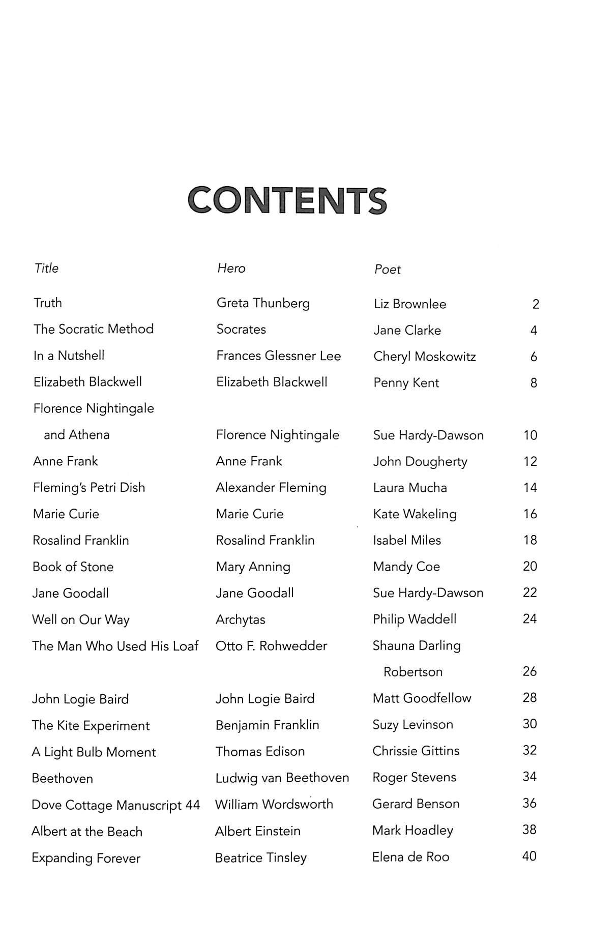 Each poem is paired with a biography, quote and fascinating fact. This collection for young poetry fans includes poems about: Greta Thunberg, Maya Angelou, Florence Nightlingale, Anne Frank, William Wordsworth, Nelson Mandela, Albert Einstein, Sir Francis Drake, Emmeline Pankhurst, Mahatma Ghandi, Malala Yousafzai and many more.