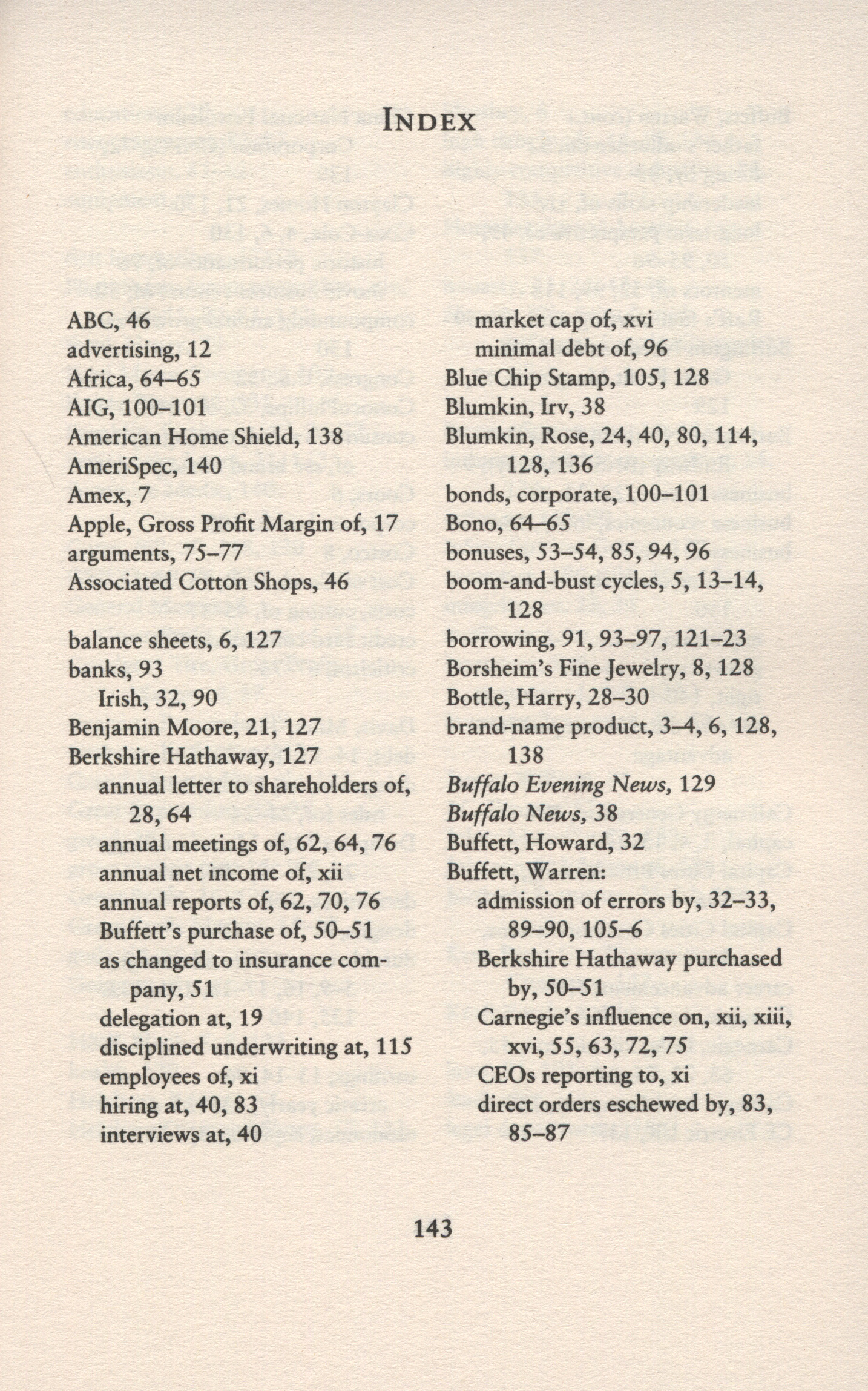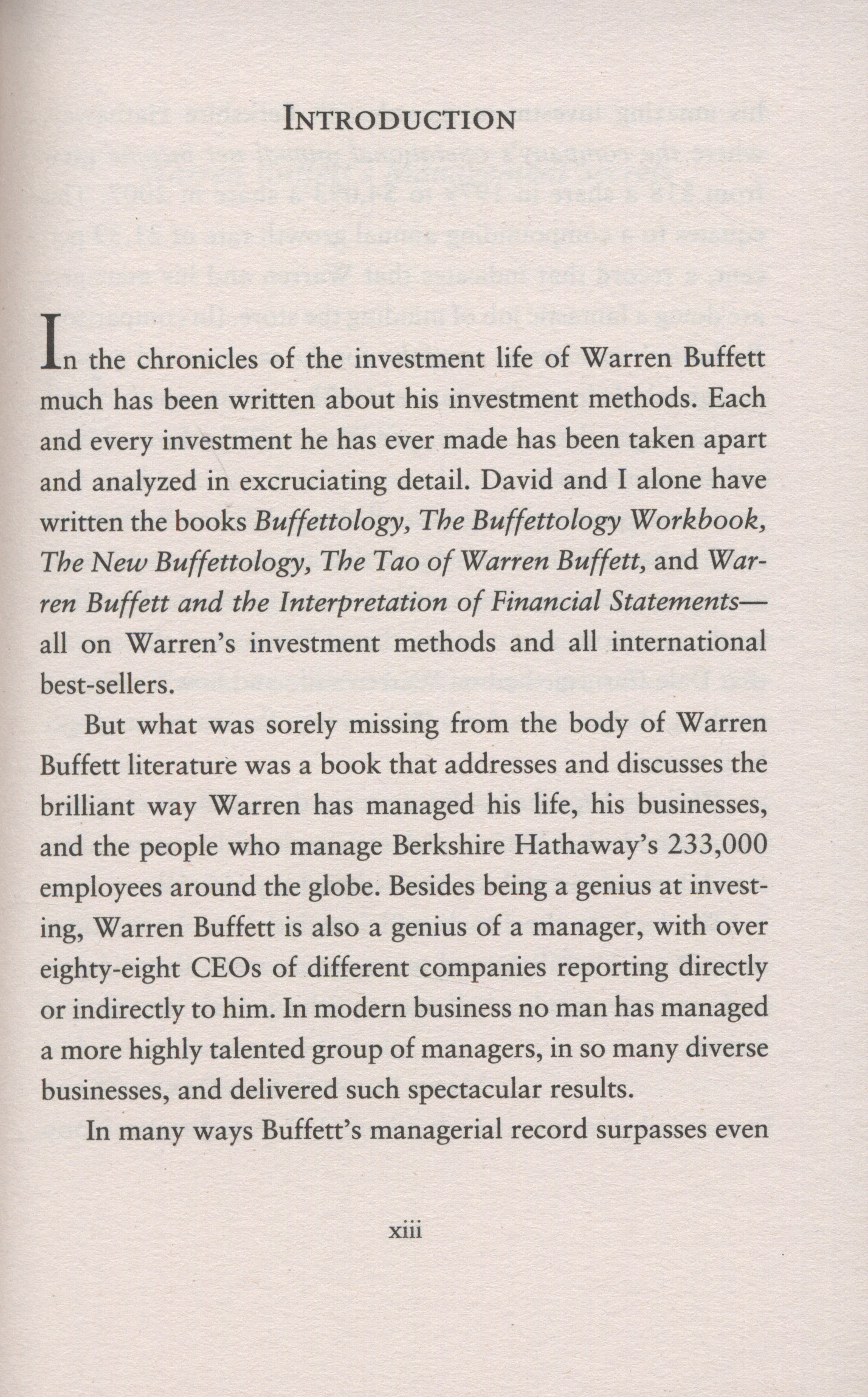 The book is divided into several sections covering Warren Buffett's personal business management: .