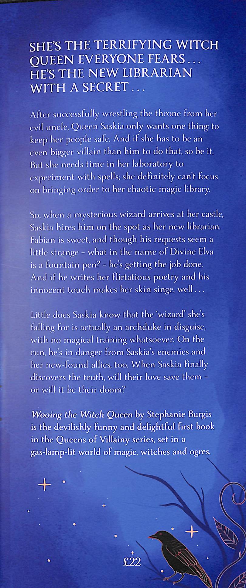 Wooing the Witch Queen by Stephanie Burgis is the start of a delightful, funny and seductive romantasy trilogy, set in a gaslamp-lit world where hags and ogres lurk in thick pine forests and genteel court intrigues can turn deadly . . . ‘This is a warm and lovely story with a big heart’ – Sangu Mandanna, bestselling author of The Very Secret Society of Irregular WitchesQueen Saskia is the wicked sorceress everyone fears.