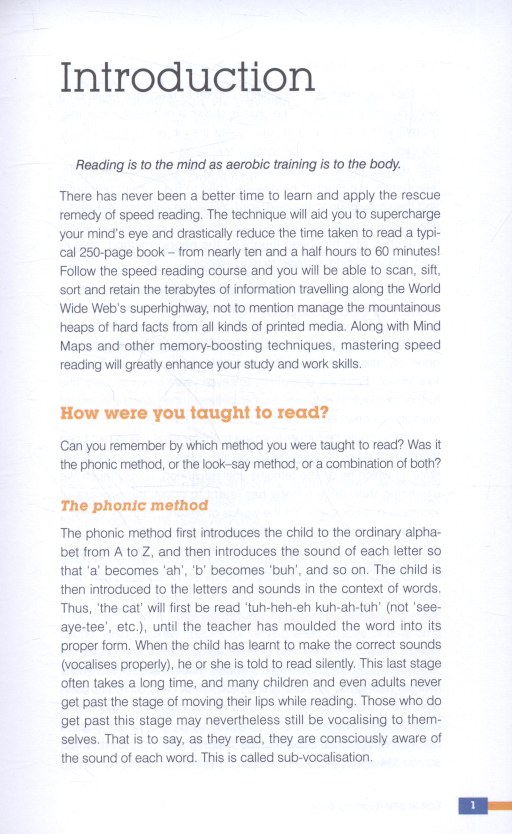 You’ll be able to zip through whole novels in one sitting; you’ll speed through newspapers and magazines in minutes; you’ll be the envy of your colleagues as you consume and understand business reports in record time.   Speed Readingwill revolutionise the way you read.