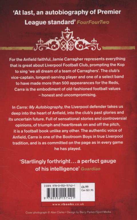 He is the embodiment of old-fashioned football values - a rarity in the modern game - honest and uncompromising. In Carra: My Autobiography, the Liverpool defender takes us deep into the heart of Anfield, into the club's past glories and its uncertain future.