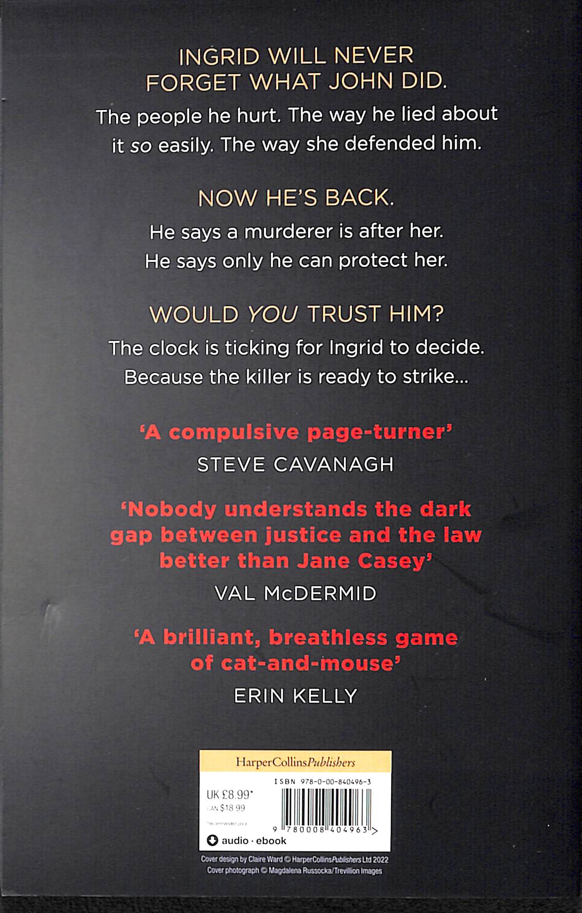 He says only he can protect her. Would you trust him? The clock is ticking for Ingrid to decide. Because the killer is ready to strike… Praise for The Killing Kind 'Nobody understands the dark gap between justice and the law better than Jane Casey' Val McDermid ‘Cool, accomplished, compulsive’ Cara Hunter ‘Extremely tense and very gripping’ Ruth Ware ‘A compulsive page-turner ’ Steve Cavanagh ‘A breathless game of cat-and-mouse’ Erin Kelly ‘A truly masterly thriller’ Liz Nugent ‘Tense and well-plotted’ Harriet Tyce ‘Each twist tightens the screw’ J.