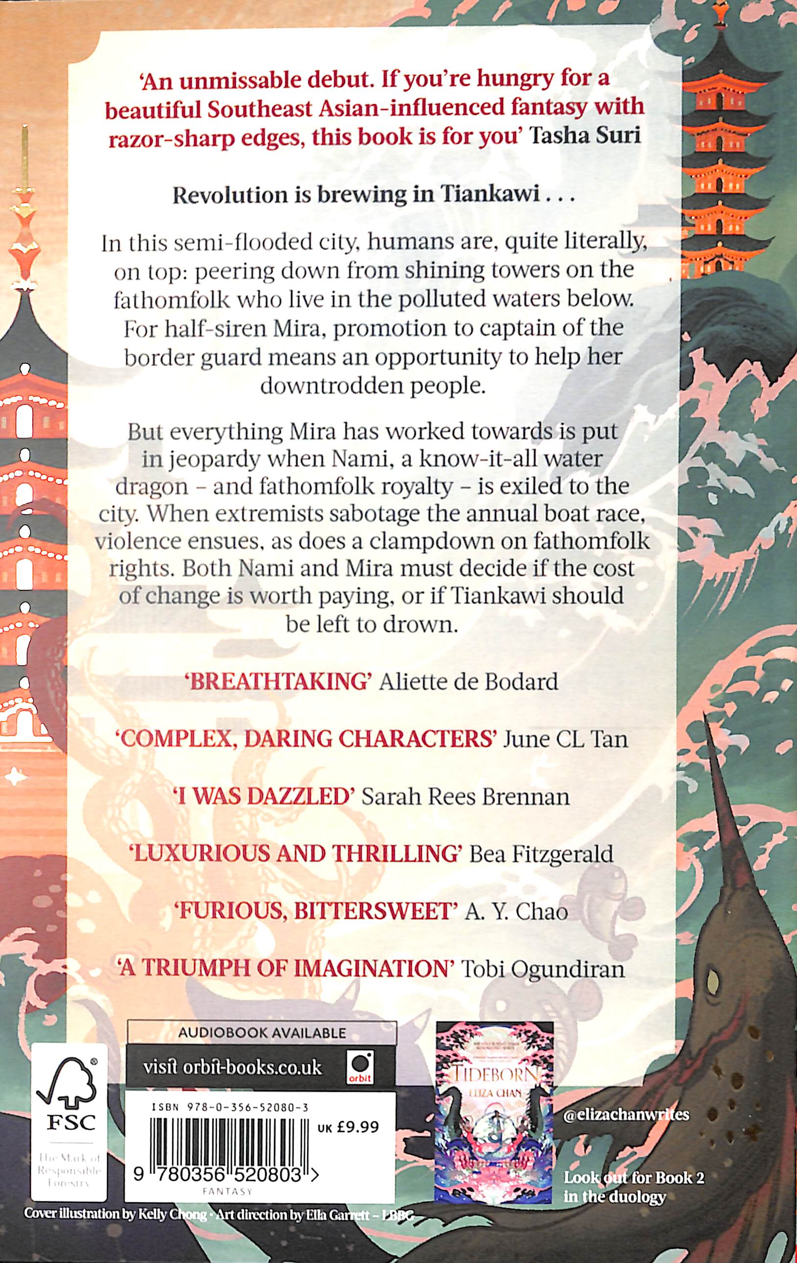 This debut fantasy inspired by East Asian mythology and watery folk tales is perfect for fans of Jade City, The Bone Shard Daughter and House of Earth and Blood. Welcome to Tiankawi - shining pearl of human civilization and a safe haven for those fleeing civil unrest. Or at least, that's how it first appears. But in the semi-flooded city, humans are, quite literally, on top: peering down from shining towers and aerial walkways on the fathomfolk - sirens, seawitches, kelpies and kappas - who live in the polluted waters below. For half-siren Mira, promotion to captain of the border guard means an opportunity to help her downtrodden people.