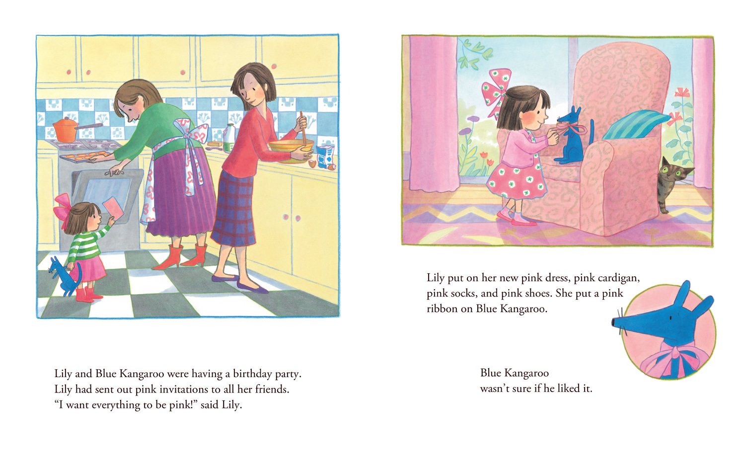 Pink invitations, pink cake and pink presents. But Blue Kangaroo is not pink! Has Lily forgotten her best friend?