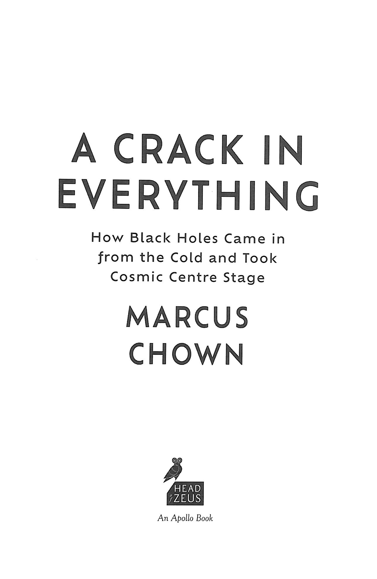 On 10 April 2019, a team of astronomers made history by producing the first image of a black hole. A Crack in Everything is the story of how black holes came in from the cold and took cosmic centre stage.