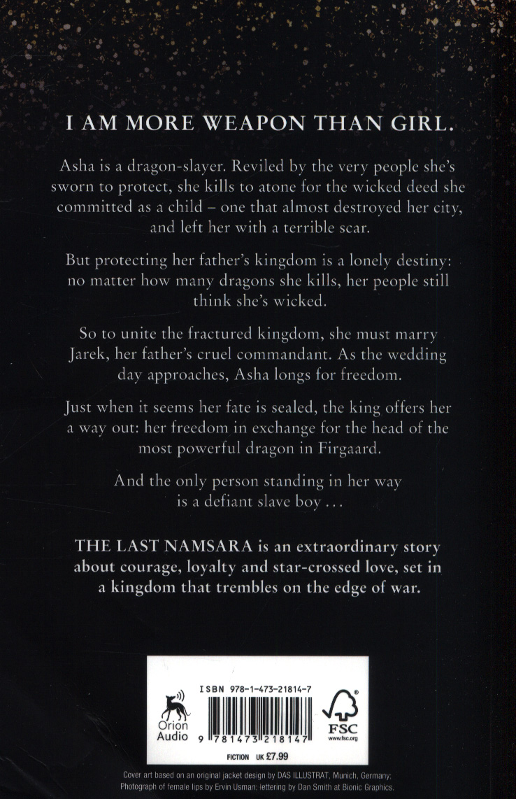 She longs to atone for the terrible deed she committed as a child - one that almost destroyed her city, and left her with a terrible scar. But no matter how many dragons she kills, her people still think she's wicked. So now she plans to slay the most powerful dragon of all. And the only person standing in her way is a defiant slave boy, leading a rebellion she can't possibly be a part of . . . THE LAST NAMSARA is an extraordinary story about courage, loyalty and star-crossed love, set in a kingdom that trembles on the edge of war. For fans of Madeline Miller, Katherine Arden, Laini Taylor and Tomi Adeyemi. **********************************'An accomplished fantasy novel . . . I'll definitely be looking out for the next one' Joanne Harris'The most simply thing I can say is this is the best book I have ever read and Kristen Ciccarelli is now my favourite author . . . your soul has been waiting for a story this beautiful' Tomi Adeyemi'It's always refreshing to see a non-traditional fantasy setting. And a kickass princess . . . a dash of Arabian Nights story magic, plus dragons? Yes please! Elspeth Cooper'The Last Namsara is easily one of my favourite fantasy books of this year . . . It's fast paced, action packed, filled with a diverse cast . . . Fans of An Ember in the Ashes, Seven Realms, and the Shattered Realms series will devour this' YABooksCentral