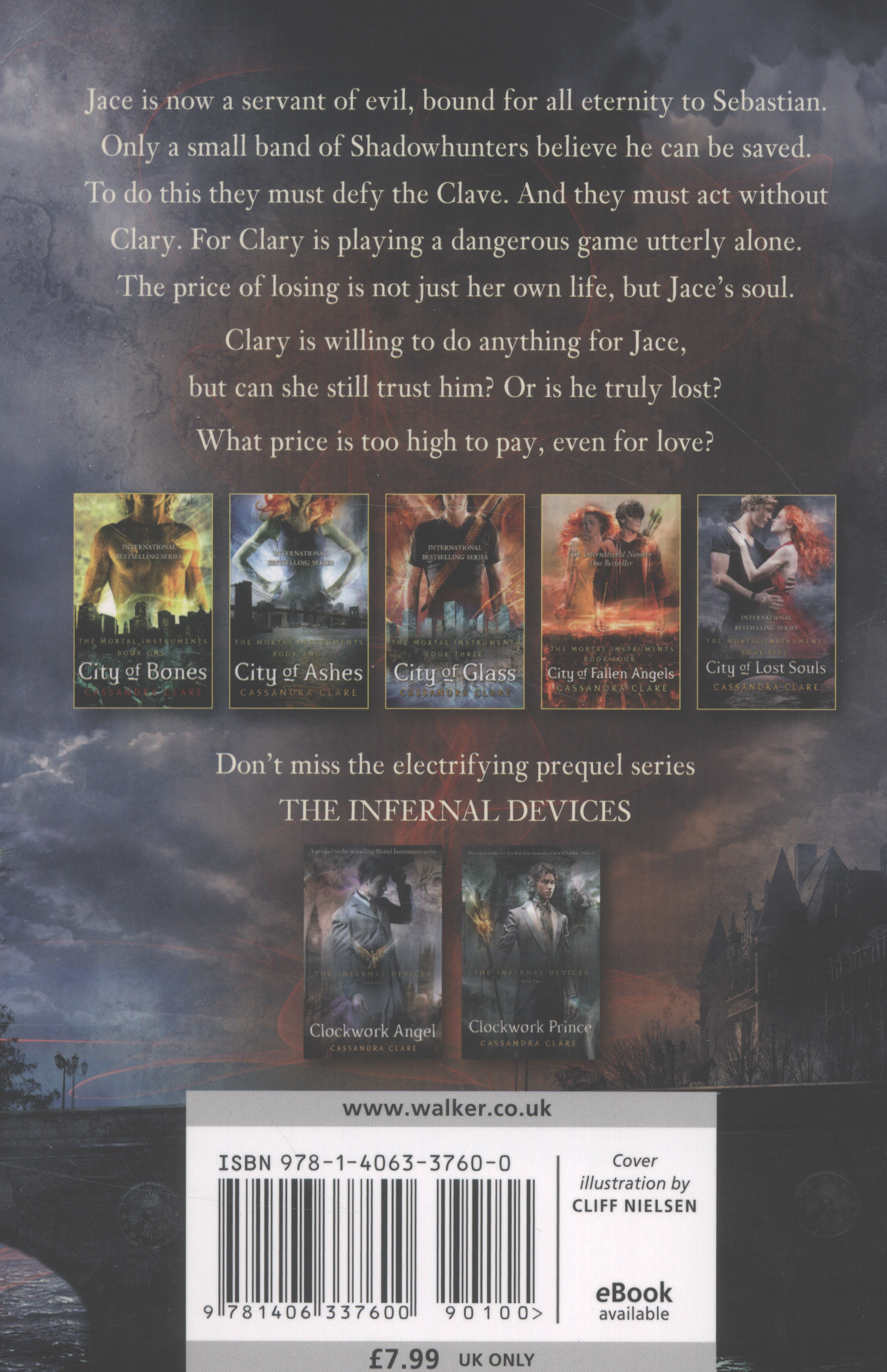 What price is too high to pay, even for love? Clary is willing to do anything for Jace, but can she still trust him? Or is he truly lost? But her happiness has come at a price... This edition contains a map and a foreword by Cassandra Clare. Read all the sensational books in The Shadowhunter Chronicles: The Mortal Instruments, The Infernal Devices, Tales from the Shadowhunter Academy, The Bane Chronicles, The Dark Artifices, The Last Hours and The Shadowhunter’s Codex. LOOK OUT FOR THE WICKED POWERS – COMING IN 2026. AVAILABLE TO PRE-ORDER SOON.