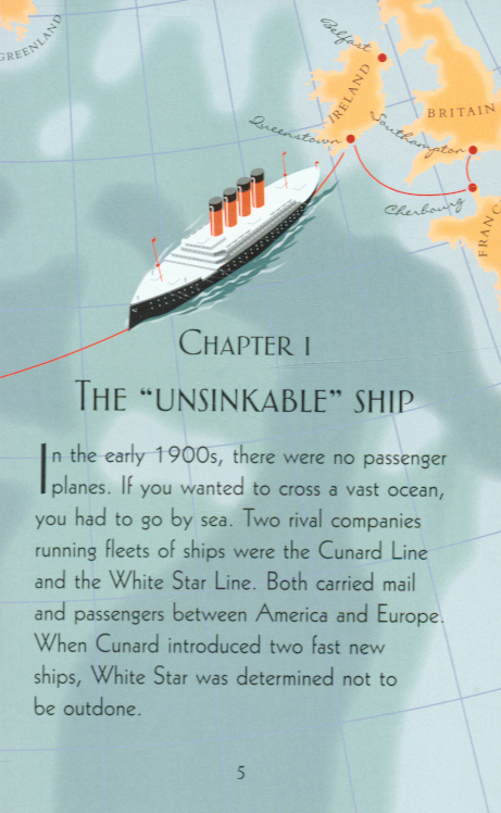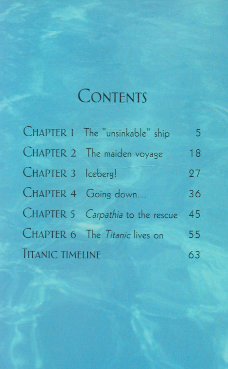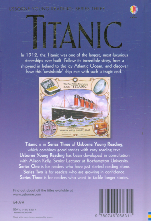 Young Reading Series 3 is for readers who want to tackle longer stories. Chapters in this book include:- The "unsinkable" ship- The maiden voyage- Iceberg!- Going down... - Carpathia to the rescue- The Titanic lives on- Titanic timeline