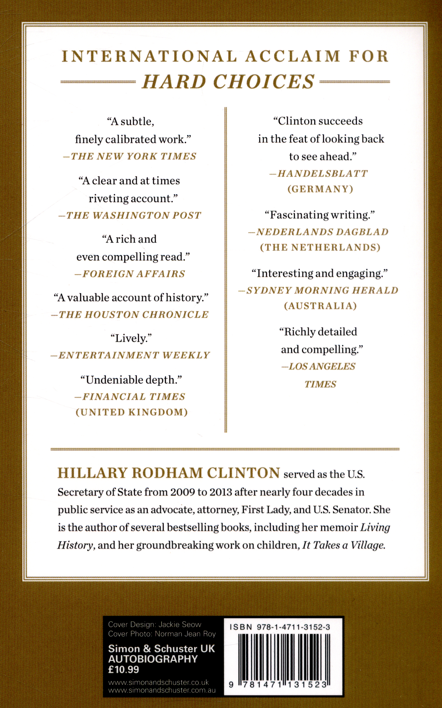 This memoir is the story of the four extraordinary and historic years that followed, and the hard choices that she and her colleagues confronted. Secretary Clinton and President Obama had to decide how to repair fractured alliances, wind down two wars and address a global financial crisis.