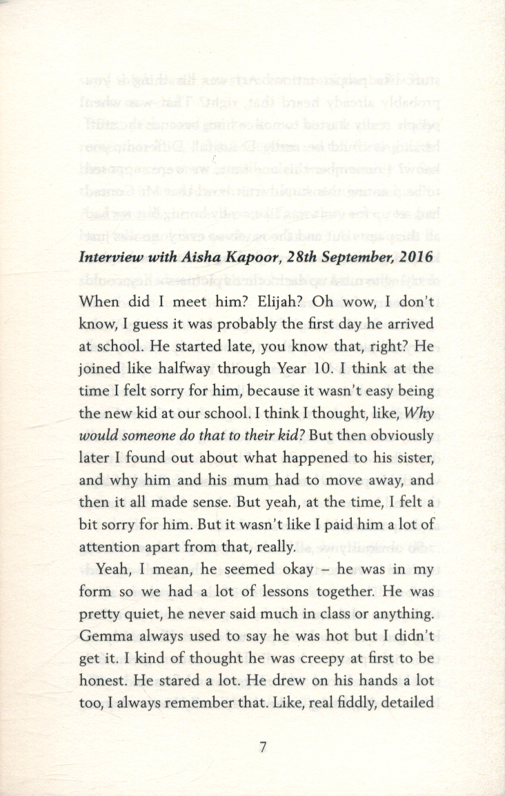 Then there's Remy, the loudmouth, and Gemma, who's more interested in college boys and getting into the crap club in town. And then there's Elise: the pretty one. But at the start of Year 11, when the group befriend the new boy, Elijah, things start to change.