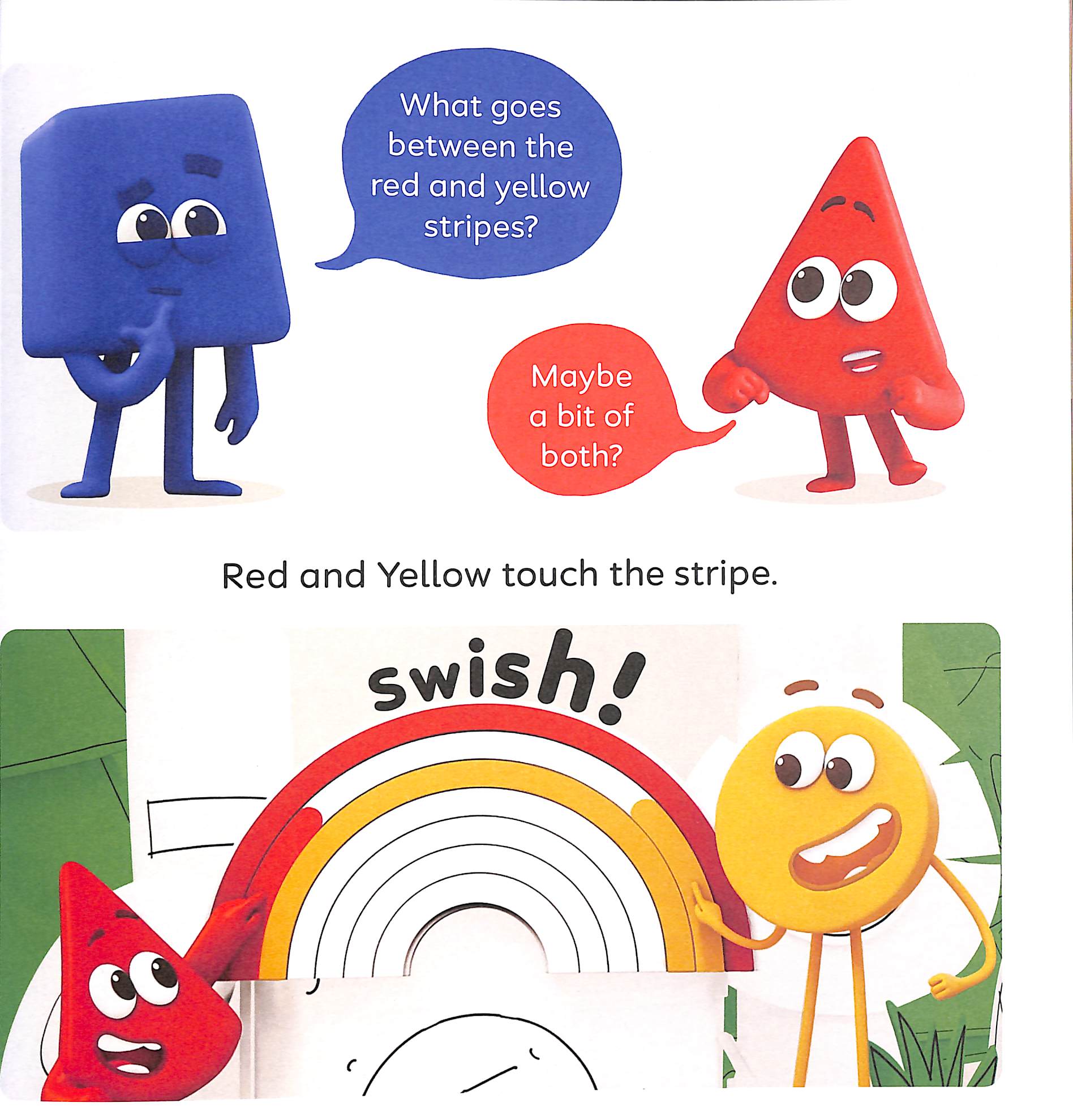 It's story time with the Colourblocks!The Colourblock friends are on an adventure, when they come across a curious, curvy shape – a rainbow!