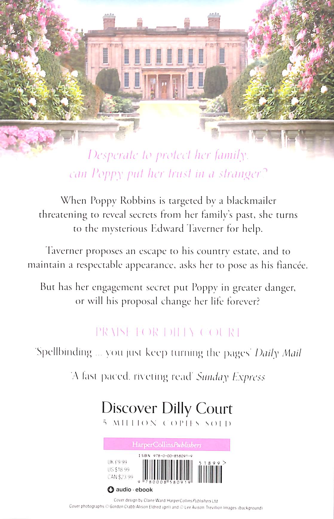 *10 Sunday Times Number Ones* *Over 5 million copies sold* Escape into the world of Dilly Court this spring, with the latest unforgettable historical drama from the reader's favourite. Desperate to protect her family, can Poppy put her trust in a stranger? When Poppy Robbins is targeted by a blackmailer threatening to reveal secrets from her family’s past, she turns to the mysterious Edward Taverner for help. Taverner proposes an escape to his country manor, and to maintain a respectable appearance, he asks her to pose as his fiancée.