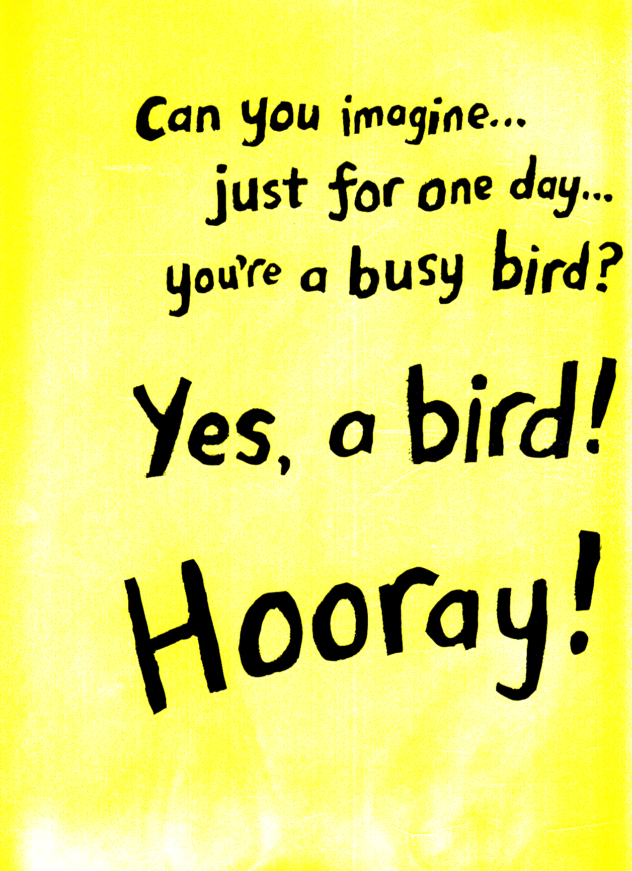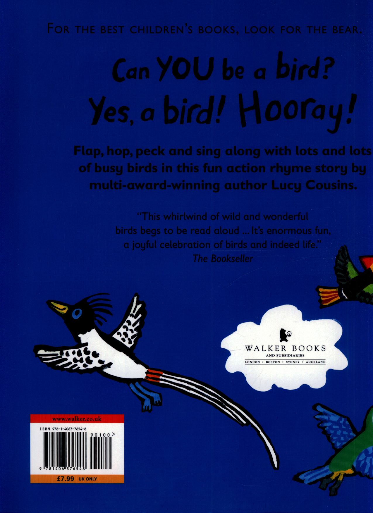 Peck, hop, flap and make some noise in this story full of colour, rhyme and feathered friends – now in paperback!Flap your wings, fly up high, open your beak and sing in this fun action rhyme story about fantastical birds by multi-award-winning author Lucy Cousins. "Can you imagine ... just for one day ... you're a busy bird? Yes, a bird! Hooray!" Can you stand on one leg like a flamingo or waddle like a penguin?