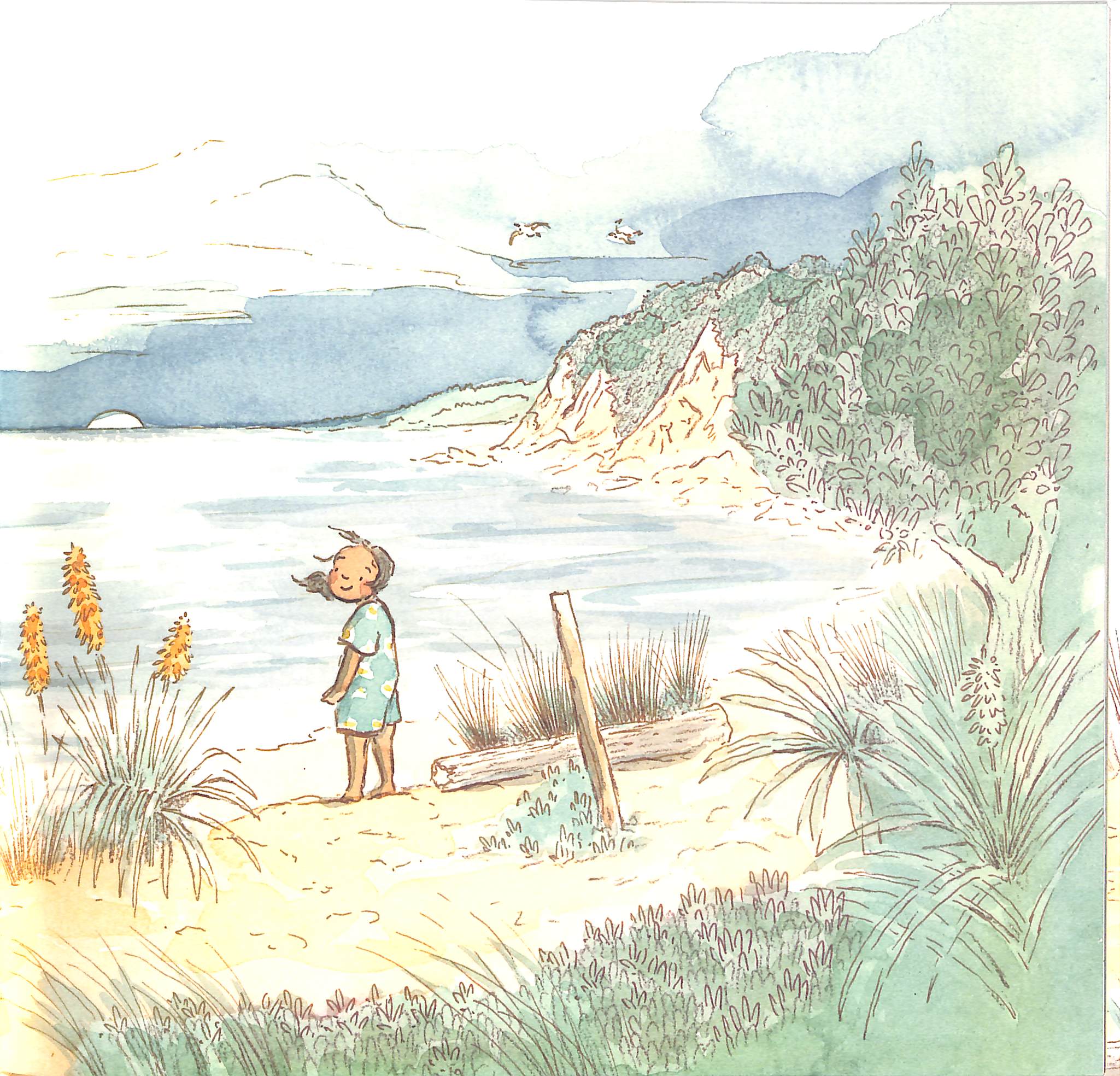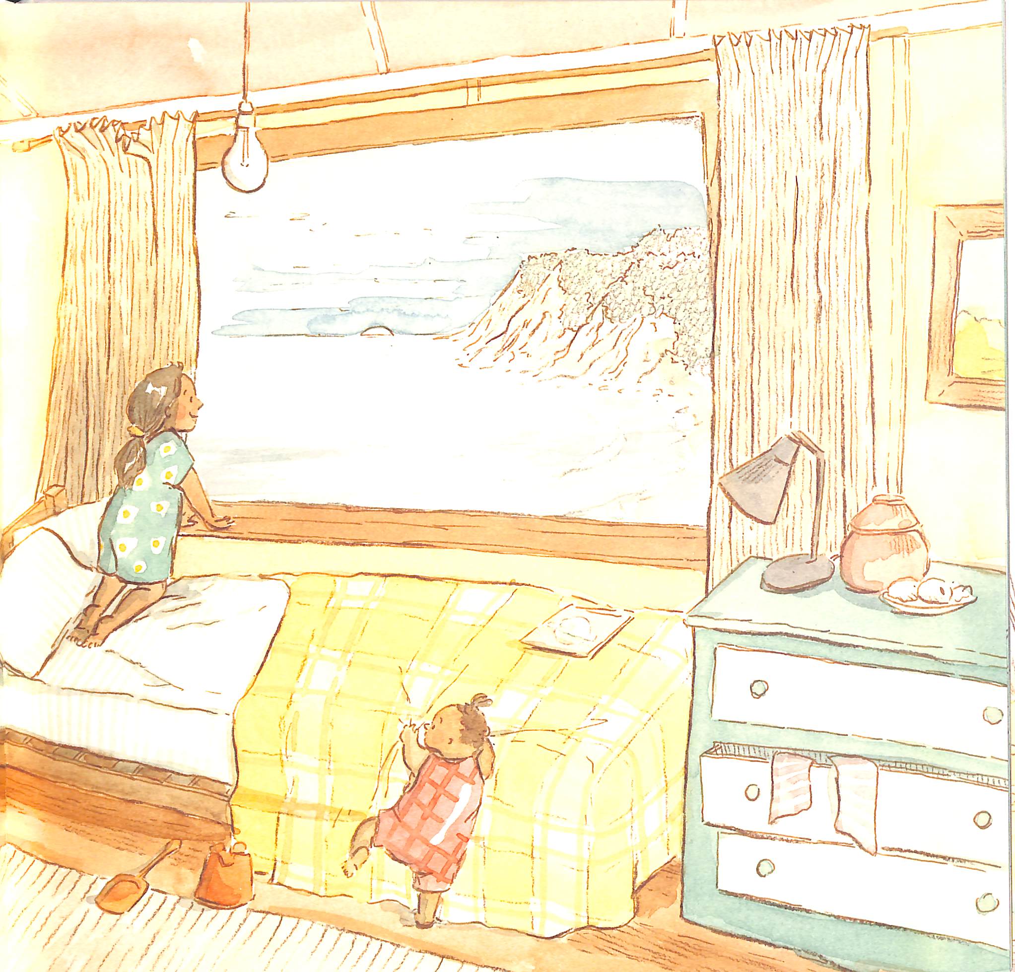 The cadence of the final words echoes the shushing waves in a gentle signal of time for readers to sleep—"good day, good sea, good sand, good night." This simple poem by internationally renowned author Joy Cowley transports the reader to a childhood summer with language that asks to be read over and over.