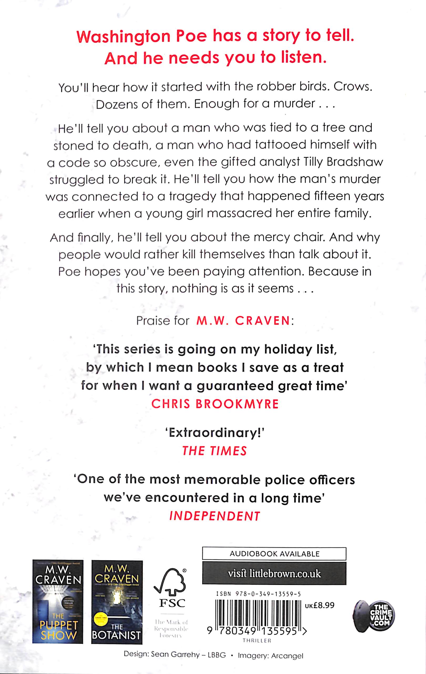 He'll tell you how the man's murder was connected to a tragedy that happened fifteen years earlier when a young girl massacred her entire family. And finally, he'll tell you about the mercy chair. And why people would rather kill themselves than talk about it . . . Poe hopes you've been paying attention. Because in this story, nothing is as it seems . . . ----MORE PRAISE FOR MW CRAVEN:'Craven renders the darkness of the human condition with immense skill, ratcheting the tension to a nails-on-chalkboard pitch.