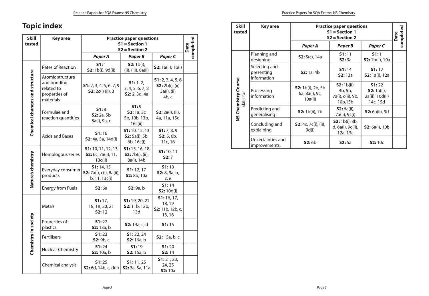 Exam Board: SQA Level: National 5 Subject: Chemistry First Teaching: 2017, First Exam: 2018 These National 5 Chemistry Practice Papers look just like the SQA exam and will help you get ready for the real thing!