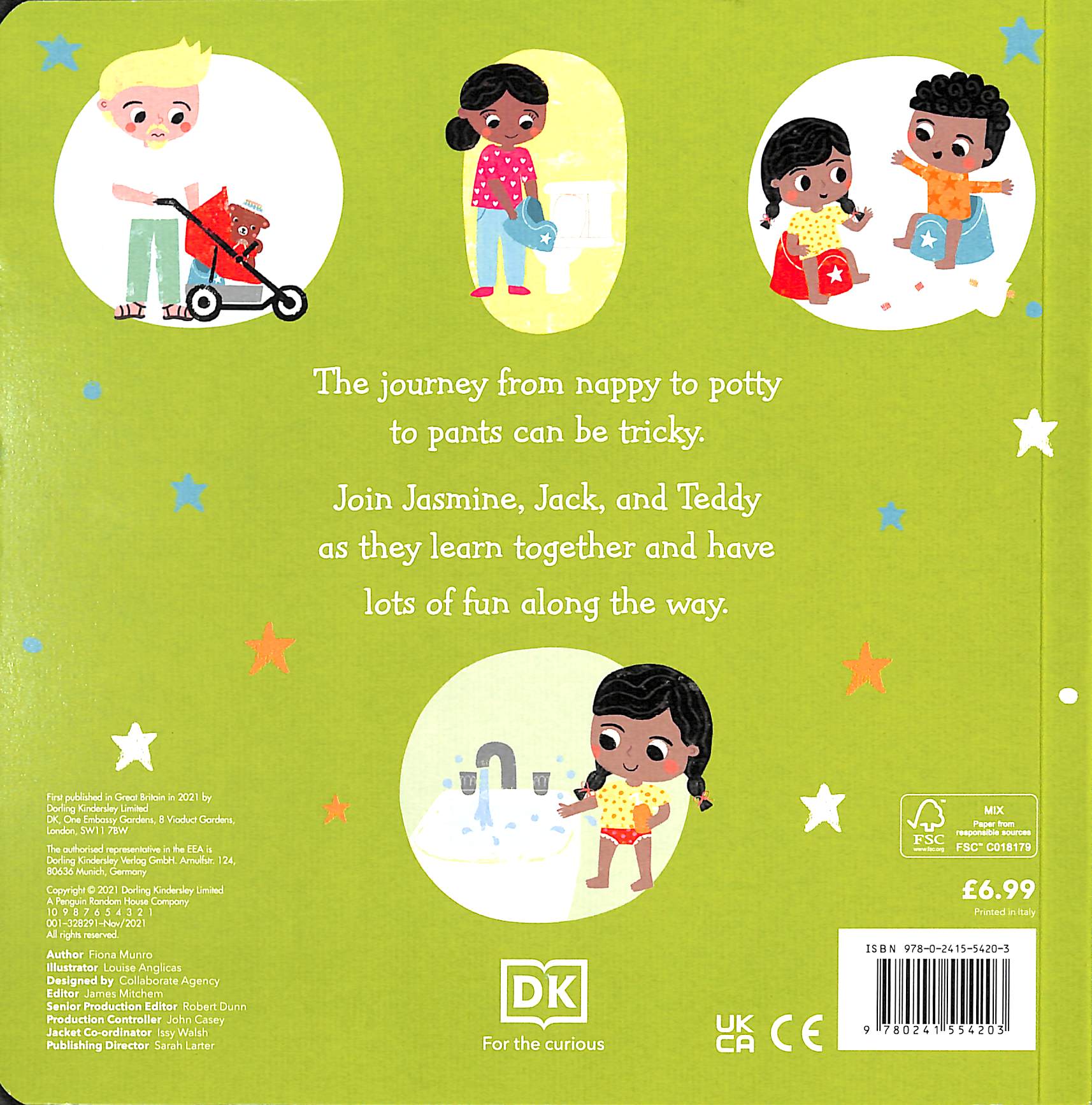 This potty book includes: - A host of relatable characters - twins Jack and Jasmine, their parents/carers, and Teddy!- Covers the various steps children need to gain the confidence to use the potty, including choosing a potty, the transition from nappies to pants, and the importance of personal hygiene- Encourages positive reinforcement for the twins when they use the potty correctly- Suitable for both boys and girls with practical advice for parents- Bright and engaging illustrations with actions that children can copyIt's time that Jack and Jasmine started learning how to use the potty and wearing 'big girl and boy' pants.