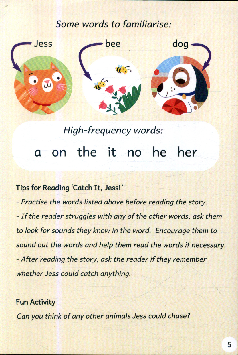 This red early reader includes two fun and simple stories about the cat Jess who just loves to chase things and also wants to find the perfect place to sleep.
