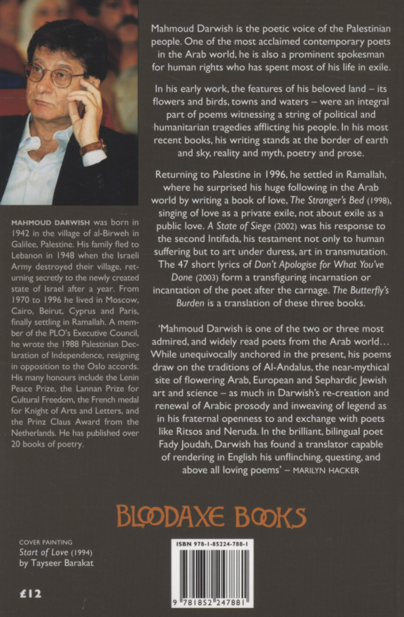 The Butterfly's Burden by Darwish, Mahmoud (9781852247881) | Browns Books