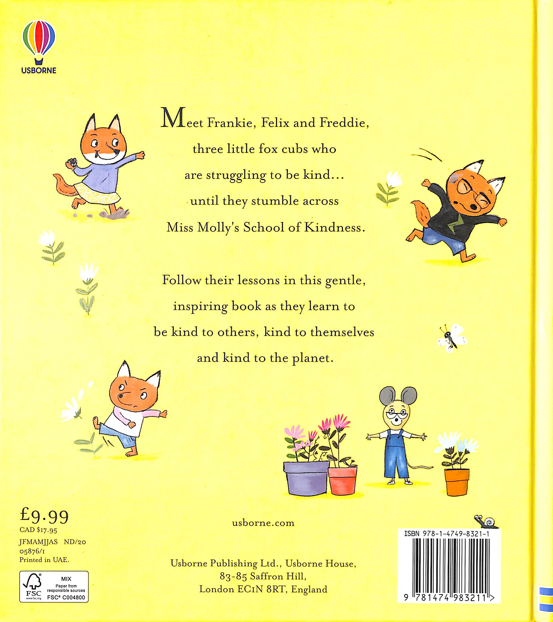 At Miss Molly's School of Kindness, three naughty fox cubs find out how to be kind to others, kind to themselves, and the importance of being kind to the planet.