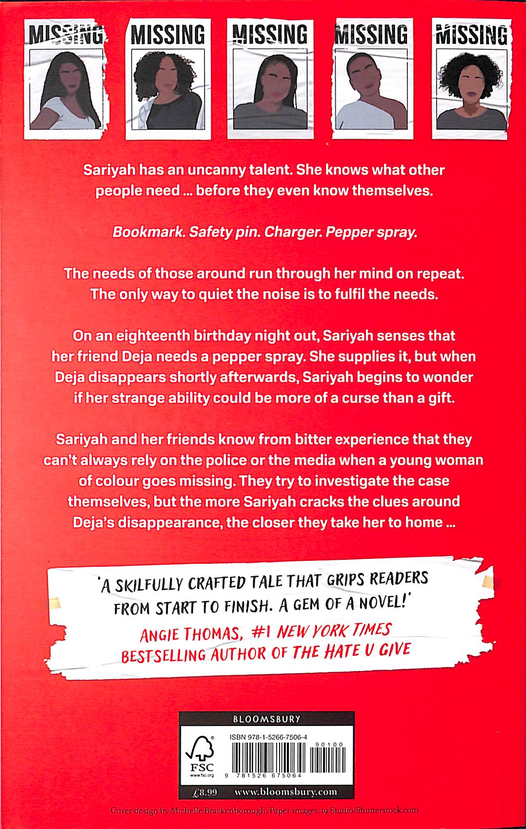 A brilliantly page-turning thriller with an unusual psychological twist, which fans of One of Us is Lying, Ace of Spades and A Good Girl's Guide to Murder will love. 'Memorable, fascinating and full of emotional complexity, this is an original, layered YA thriller.' Guardian'Intense and compeling thriller ... a jaw-dropping ending ... powerful and thoroughly engrossing' LoveReading websiteSariyah is determined not to let her missing friend become just another statistic, one of many vanished Black girls.