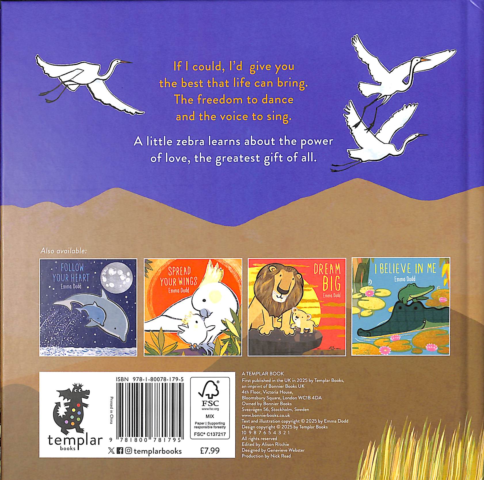 Another inspirational book in Emma Dodd's bestselling series, The Greatest Gift focuses on the power of love. If I could I would give youall the joy life can bring,the courage to danceand the voice to sing. A little zebra learns about the power of love, the greatest gift of all.