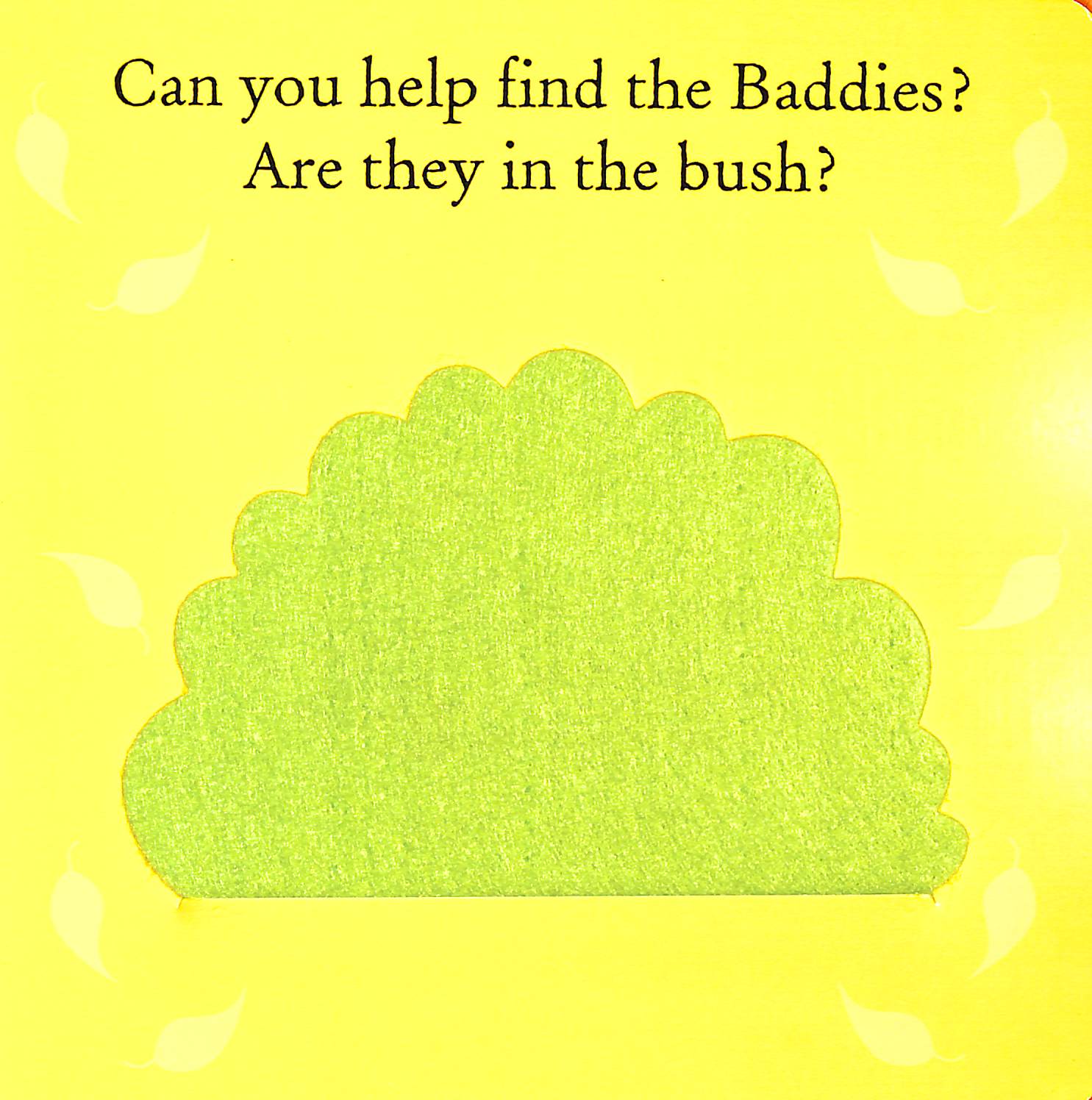 Where have the Baddies gone? Can you find them? Lift the bright and bold felt flaps in this fun chunky board book until you find the troublesome trio! This board book will keep your toddler entertained while also helping to increase hand-eye co-ordination, develop speech and aid learning through repetition. Based on the bestselling book The Baddies by Julia Donaldson and illustrated by Axel Scheffler, the creators of The Gruffalo. Collect them all: Let's Find Tiddler, Let's Find Superworm, Let's Find Stick Man, Let's Find Zog, Let's Find The Smeds and the Smoos, Let's Find The Scarecrows' Wedding, Let's Find Tabby McTat and Let's Find Tiddler Look out for Julia Donaldson and Axel Scheffler's latest picture book Jonty Gentoo
