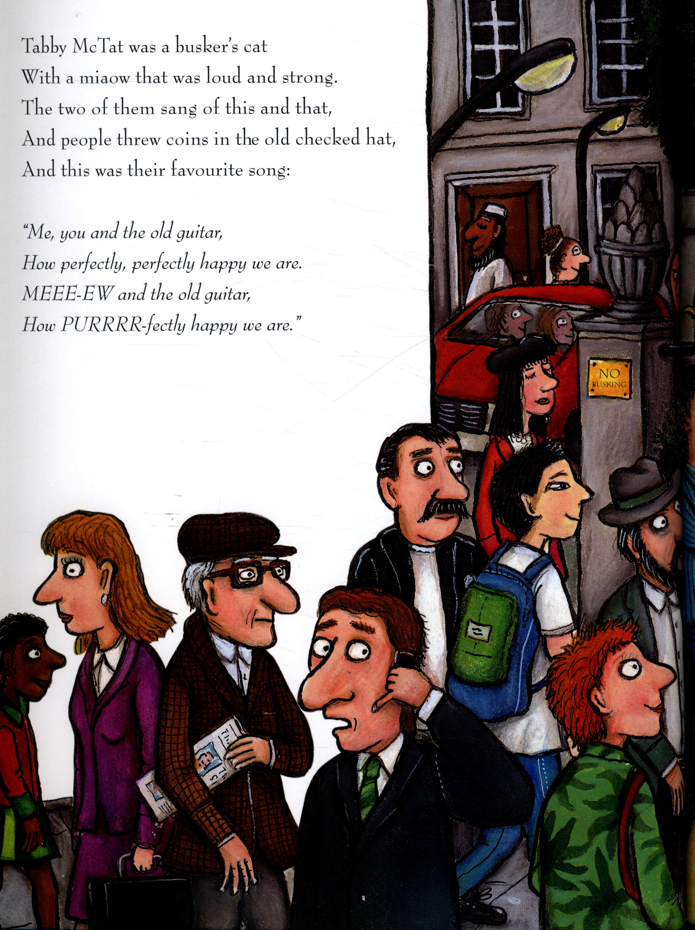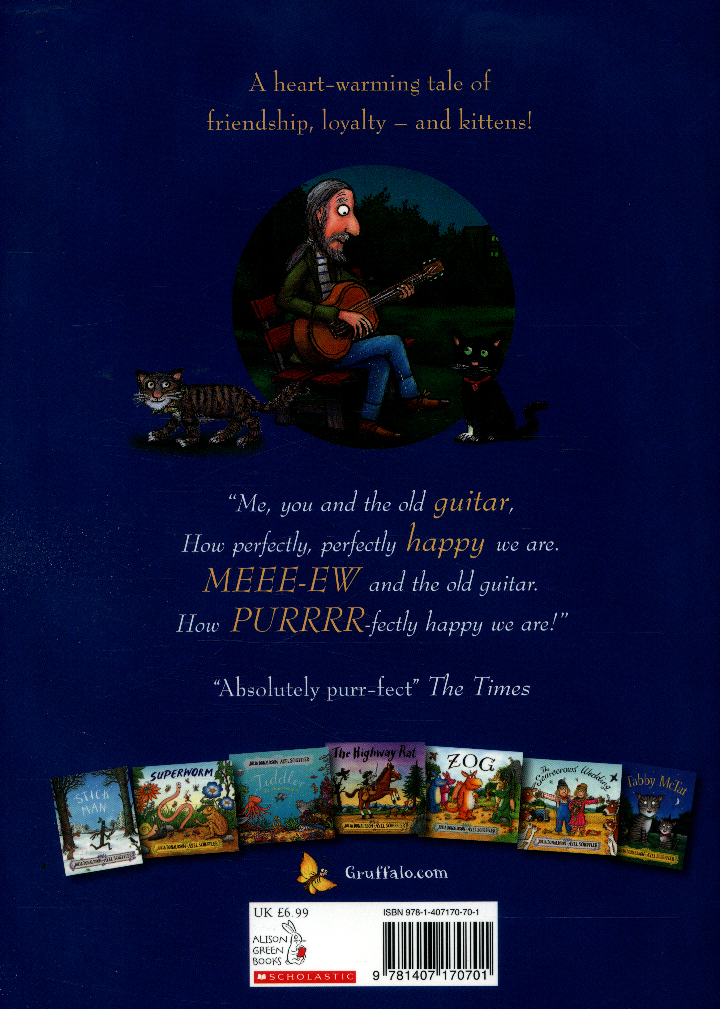 The heart-warming picture book from the number one bestselling author and illustrator of The Gruffalo, Stick Man and Zog. "Me, you and the old guitar. How perfectly, perfectly happy we are. MEEE-EW and the old guitar. How PURRRR-fectly happy we are!" Tabby McTat is purr-fectly happy, singing along all day with Fred the busker.