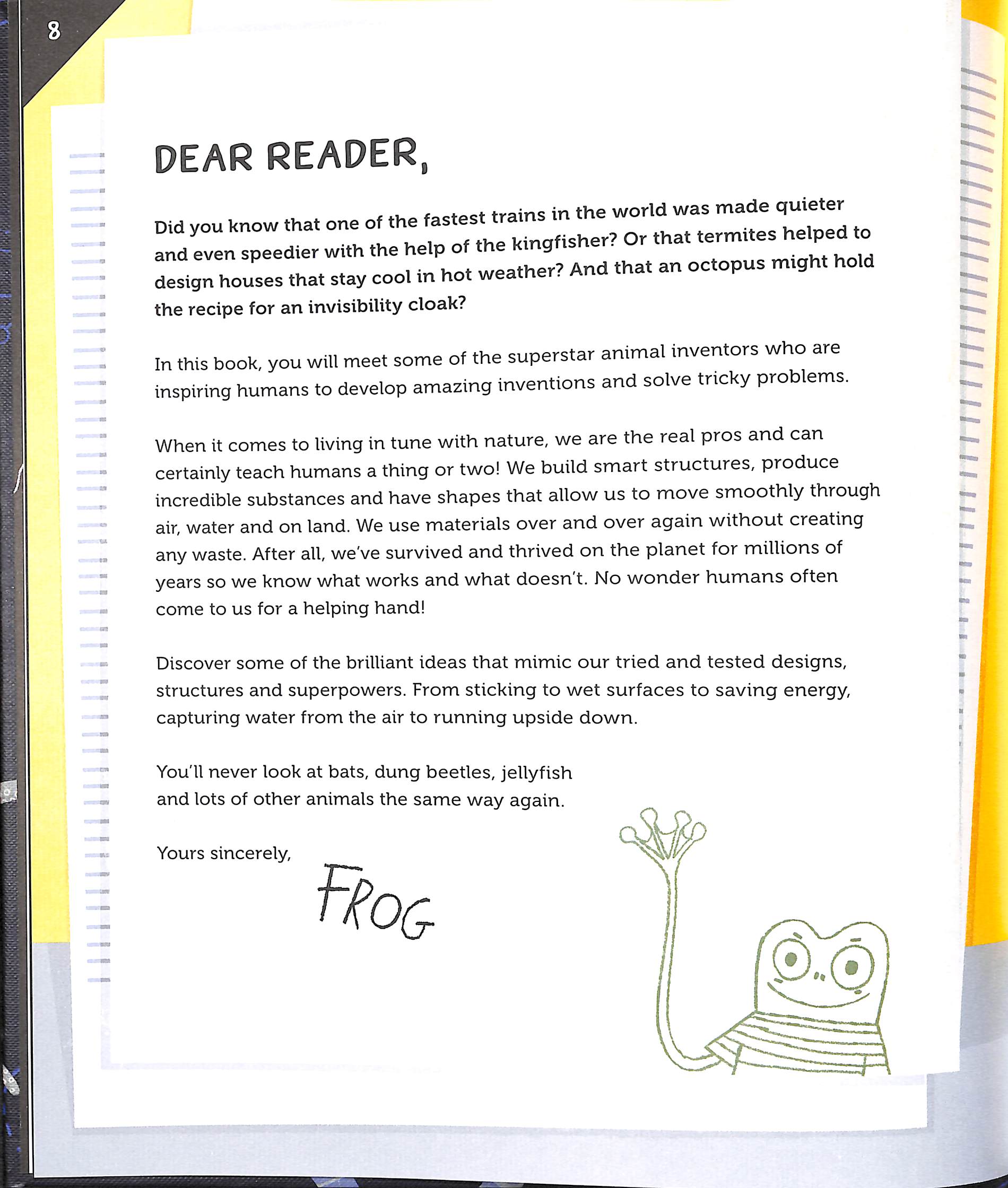 WINNER OF THE BLUE PETER BOOK AWARDS 2022An international best-seller, translated into over 25 languagesIn this book you will meet the animal inventors who have shared their super inventing powers to make amazing things for humans.  We have invented ways of solving problems, making unbelievable materials, ways of getting around and working out how to survive on our own for millions of years.